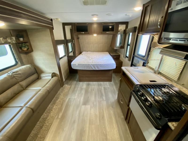 The Coleman Light Series models were built for outdoor enthusiasts that also appreciate relaxing indoors with amenities such as an iN-Command touch screen control center with smartphone app allowing owners to control the water pump, water heater, power awning and light fixtures even in the dark. The type of travelers that choose a Coleman Light model want a durable, four season RV with an enclosed and insulated underbelly, electric stabilizer jacks, an outside shower with hot and cold water connections, solar charging connection, and inside features such as stainless steel appliance upgrade, a Bluetooth entertainment system, and their own queen size Rest Easy mattress when away from home. Choose your favorite layout today!