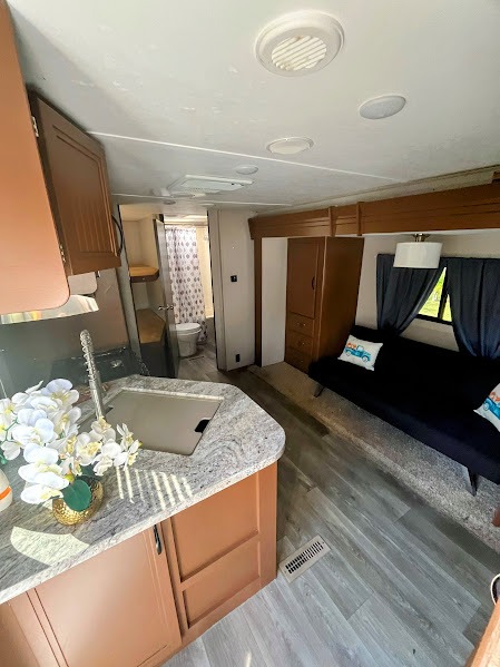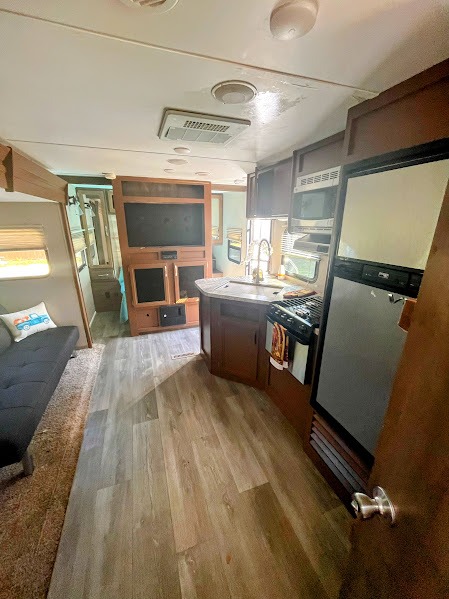 Just imagine cooking for your family outside in this Coleman Light 2405BH travel trailer while visiting with friends around the campfire. As everyone is laughing and telling jokes, you don't have to miss a thing. You will find full kitchen amenities inside for those cooler or really hot camping days. The kids will enjoy their sleeping space on the double size bunk beds and their friends will have room as well or they can sleep on the dinette. The bathroom is next to the bunks as a huge convenience especially at nighttime. Take a look to see what other features you will enjoy when you own this model!