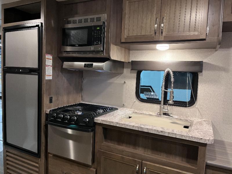 This Coleman Light 2515RL travel trailer provides sleeping space for five sleepy campers in the master bedroom and living area. If you are a single person, a couple, or a family, this model might just fit your active life style. You can make meals with the kitchen amenities while visiting with everyone then relax outside under the awning. If it's too cold to sit by the campfire, invite everyone inside to sit on the sofa or dinette. The kids might even sit on the floor. This model allows you quick access to the bathroom from the front bedroom and across from the exterior entry door. Come see what else makes this the perfect RV for you!