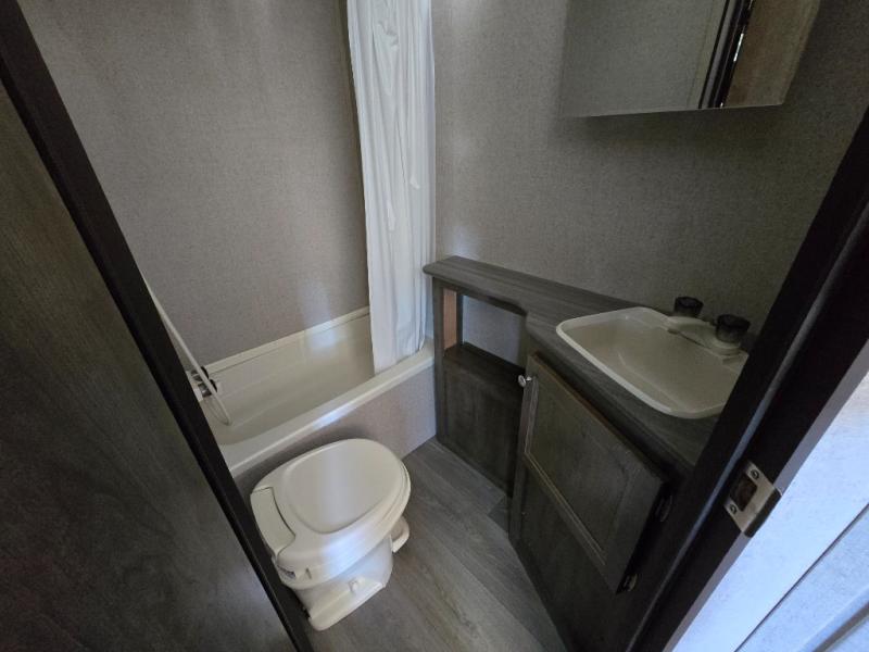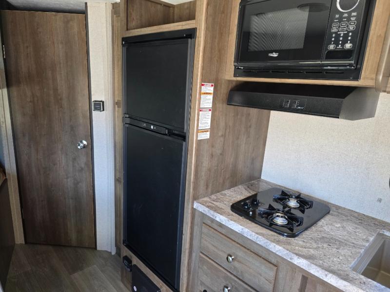 Just imagine your kids having their own bunk bed while you sleep on a Murphy bed. This single slide out Coleman Light LX 2125BH utilized the front of the trailer as a living area with a comfy sofa, and a bedroom at night when the Murphy bed is set up. The dinette provides dining and extra sleeping space when needed. You also have the convenience of a full kitchen, and a full bathroom next to the bunks. Load up the family and start making memories that will last a life time!
