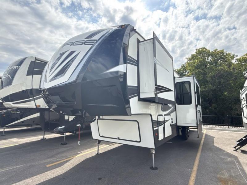Even though the Voltage is the most popular toy hauler in its class, you don't have to own toys to want or own any one of these units. These haulers are so versatile that just having the added garage space allows you so many more camping options. The extra space alone makes traveling so much more fun! Just think of how much gear you can take along for your favorite activities and outdoor games. Each rear ramp can be positioned horizontally to allow you to add optional awnings, screen rooms, and side rails to create a rear patio, or even a set of steps to the ground. Now, how is that for camping when you can take your very own outdoor patio along! On the inside, you will find that Voltage offers higher ceilings for a spacious open feel, upgraded residential furnishings, a gourmet kitchen with quartz countertops, and hardwood cabinetry as well. And, with the 30 gallon gasoline fuel station standard on every model you can be assured that you can indeed keep all of the toys going for the weekend and beyond! So, for camping that requires your favorite outdoor toys, or even a backyard patio, choose any Dutchmen Voltage FW toy hauler and begin planning your next family adventure!