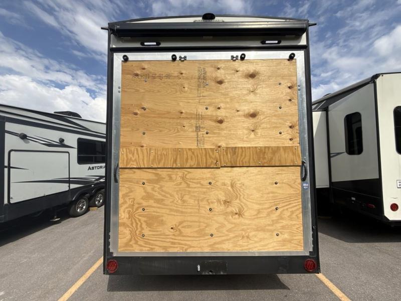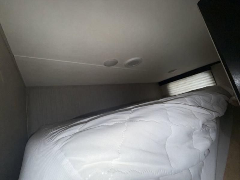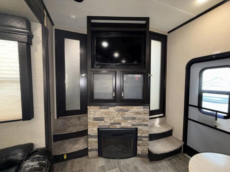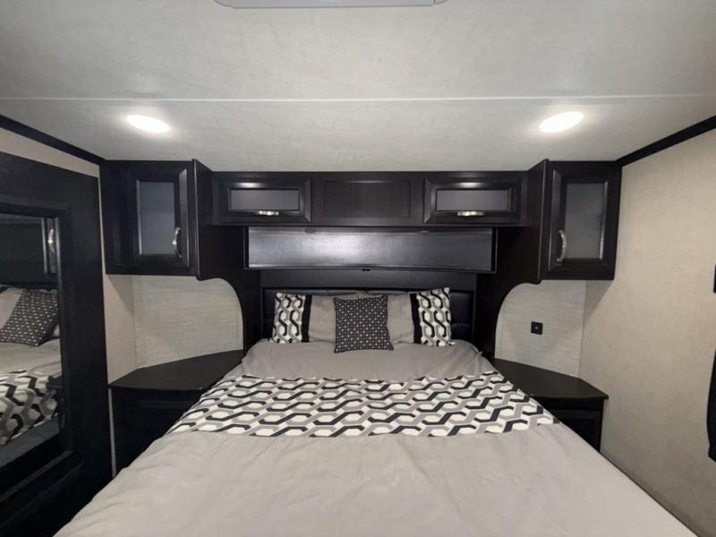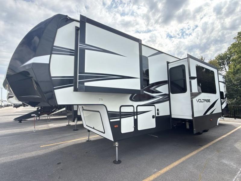 You will have everything you need to enjoy any camping adventure with this Voltage FW toy hauler. Dual entry from the outside makes loading and unloading super easy, and there are two entry doors into the living space from the garage. Dual entry into the bathroom is also another plus that you will find when inside that allows access from the living area as well as from the master bedroom up front. The private front bedroom even features his and her dual wardrobes. From generous storage throughout, to the at-home features and comforts for you and your guests, this Voltage toy hauler is a great way to travel even if you don't take along added toys!