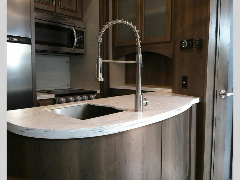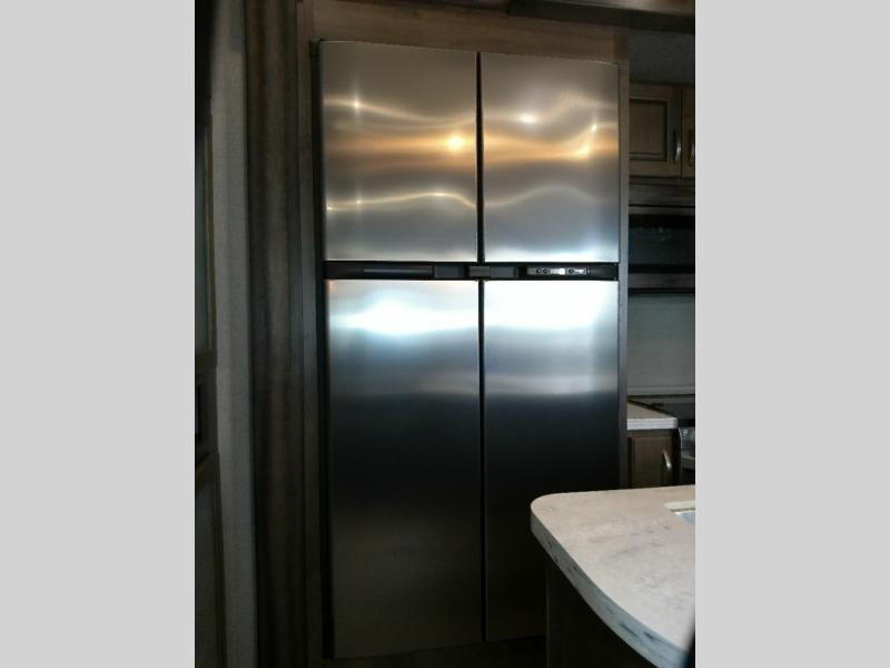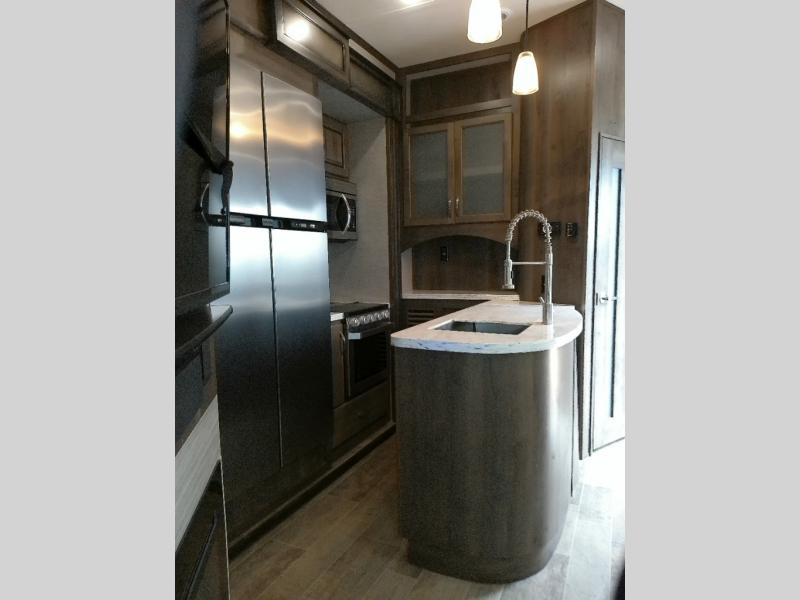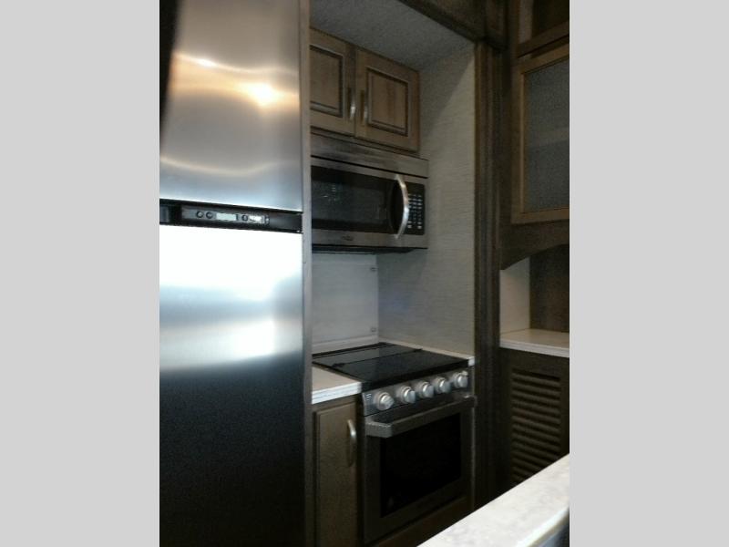 Even though the Voltage is the most popular toy hauler in its class, you don't have to own toys to want or own any one of these units. These haulers are so versatile that just having the added garage space allows you so many more camping options. The extra space alone makes traveling so much more fun! Just think of how much gear you can take along for your favorite activities and outdoor games. Each rear ramp can be positioned horizontally to allow you to add optional awnings, screen rooms, and side rails to create a rear patio, or even a set of steps to the ground. Now, how is that for camping when you can take your very own outdoor patio along! On the inside, you will find that Voltage offers higher ceilings for a spacious open feel, upgraded residential furnishings, a gourmet kitchen with quartz countertops, and hardwood cabinetry as well. And, with the 30 gallon gasoline fuel station standard on every model you can be assured that you can indeed keep all of the toys going for the weekend and beyond! So, for camping that requires your favorite outdoor toys, or even a backyard patio, choose any Dutchmen Voltage FW toy hauler and begin planning your next family adventure!