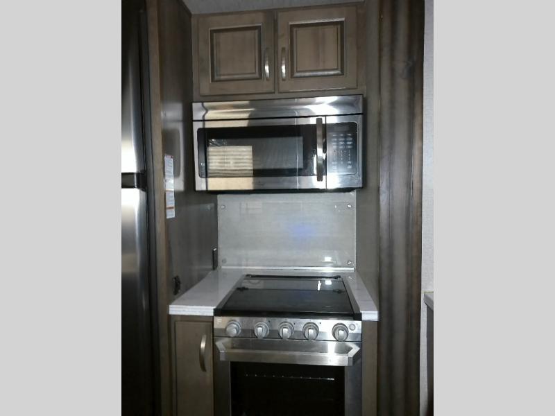 Having some at-home conveniences while you are camped is always a nice touch, but this Voltage FW toy hauler features a few extras that you are sure to enjoy! Eleven feet of cargo space is perfect for hauling dirt bikes, or a quad, and the 30 gallon fuel station makes it easy to keep the fun going all weekend long! Your down time will be enjoyable as well with plenty of seating, sleeping space, and a full kitchen, plus more! Check out the generous storage space toward the front beneath the bathroom and private front bedroom. Here you have storage space that is accessible from both sides, as well as ample wardrobes, overhead cabinets, and storage beneath the front queen bed. For those that love being outside, the outdoor entertainment center offers you a protected outdoor living space you are sure to enjoy! You can even convert the zero gravity garage door to a raised patio with a few options so you can kick back and enjoy the view that you have chosen!