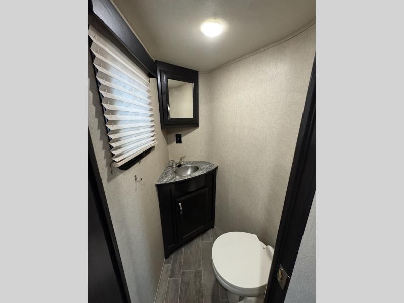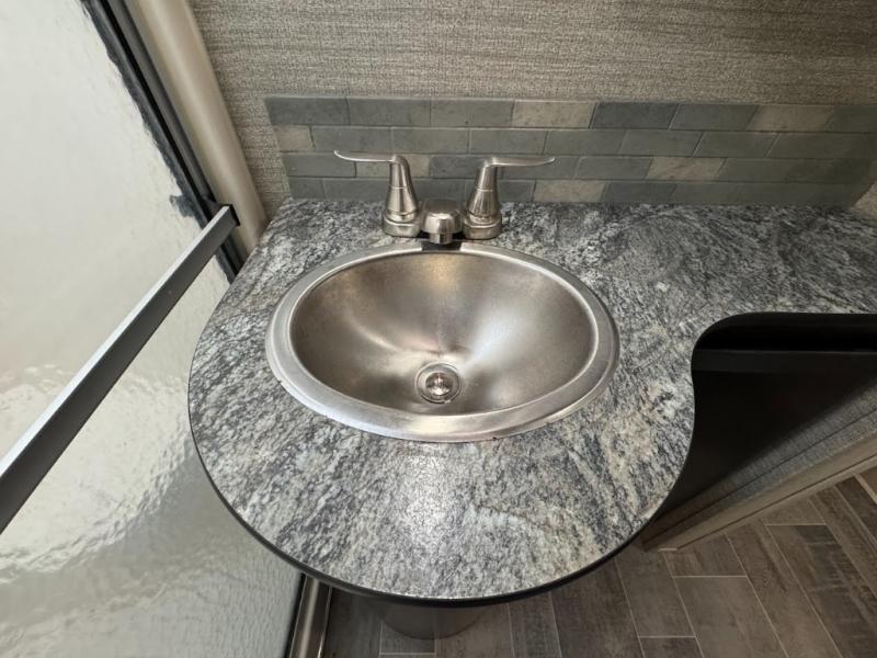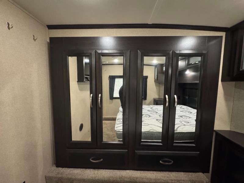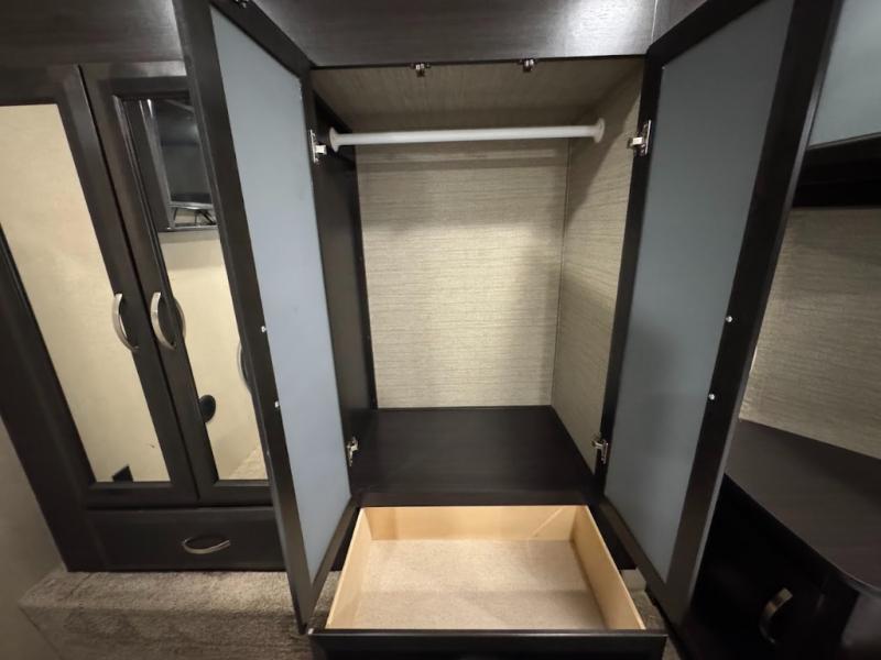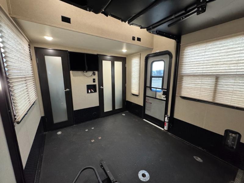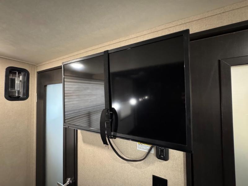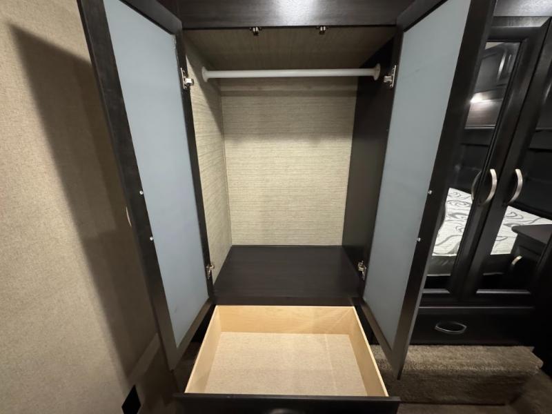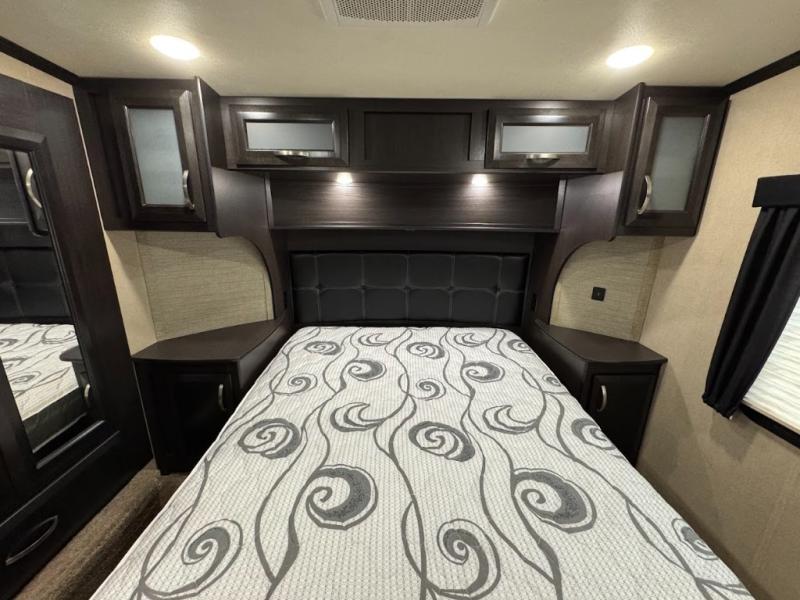 Having some at-home conveniences while you are camped is always a nice touch, but this Voltage FW toy hauler features a few extras that you are sure to enjoy! Eleven feet of cargo space is perfect for hauling dirt bikes, or a quad, and the 30 gallon fuel station makes it easy to keep the fun going all weekend long! Your down time will be enjoyable as well with plenty of seating, sleeping space, and a full kitchen, plus more! Check out the generous storage space toward the front beneath the bathroom and private front bedroom. Here you have storage space that is accessible from both sides, as well as ample wardrobes, overhead cabinets, and storage beneath the front queen bed. For those that love being outside, the outdoor entertainment center offers you a protected outdoor living space you are sure to enjoy! You can even convert the zero gravity garage door to a raised patio with a few options so you can kick back and enjoy the view that you have chosen!