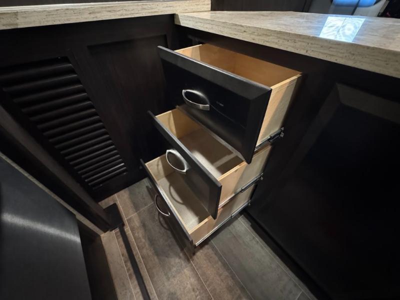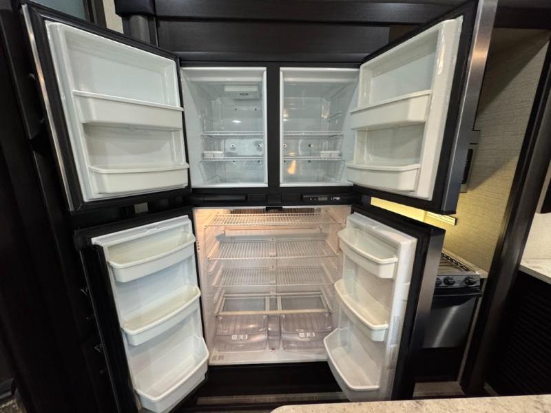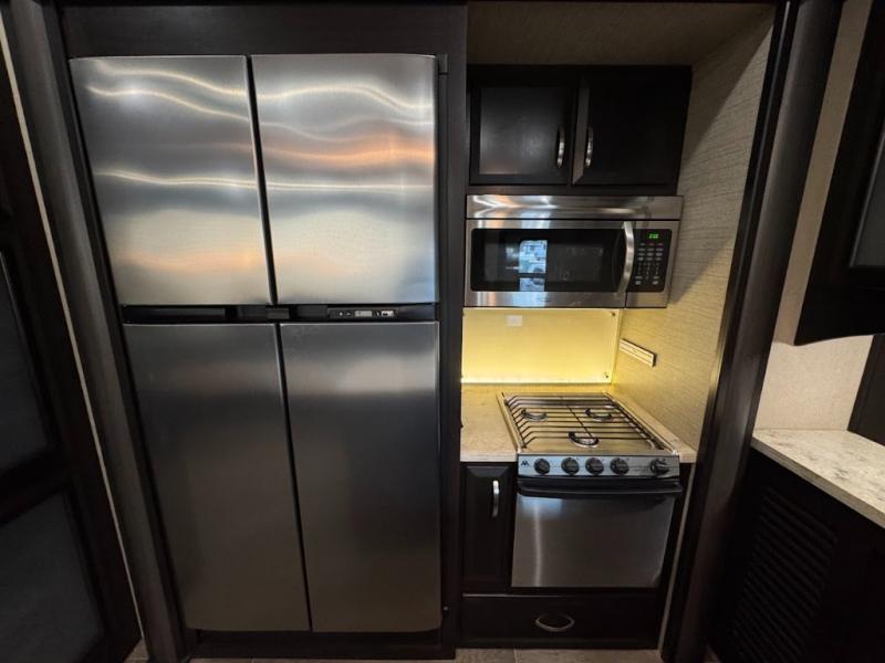 Even though the Voltage is the most popular toy hauler in its class, you don't have to own toys to want or own any one of these units. These haulers are so versatile that just having the added garage space allows you so many more camping options. The extra space alone makes traveling so much more fun! Just think of how much gear you can take along for your favorite activities and outdoor games. Each rear ramp can be positioned horizontally to allow you to add optional awnings, screen rooms, and side rails to create a rear patio, or even a set of steps to the ground. Now, how is that for camping when you can take your very own outdoor patio along! On the inside, you will find that Voltage offers higher ceilings for a spacious open feel, upgraded residential furnishings, a gourmet kitchen with quartz countertops, and hardwood cabinetry as well. And, with the 30 gallon gasoline fuel station standard on every model you can be assured that you can indeed keep all of the toys going for the weekend and beyond! So, for camping that requires your favorite outdoor toys, or even a backyard patio, choose any Dutchmen Voltage FW toy hauler and begin planning your next family adventure!
