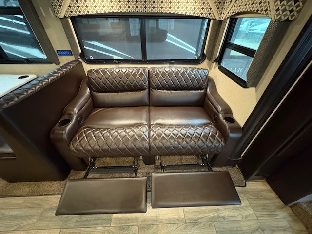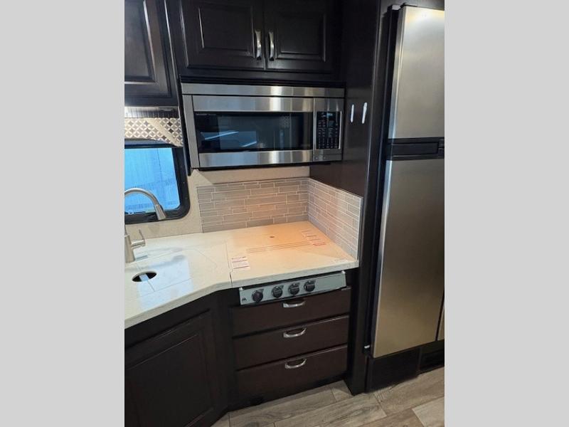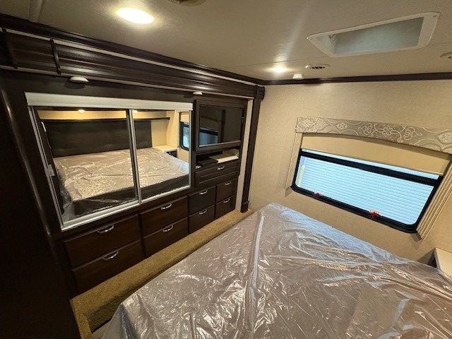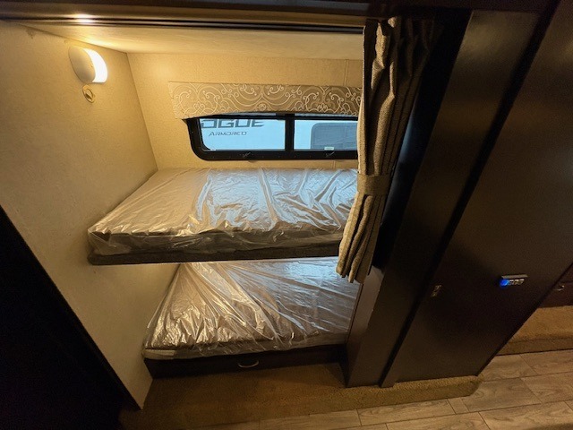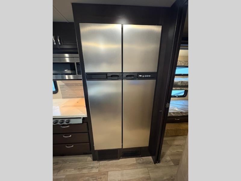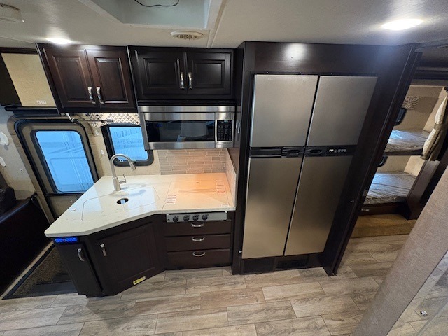 Would you like for your kids to have their own space while you are away from home? Well, the DX3 37BH motor home by Dynamax features a set of bunk beds which your kids are sure to love! You will also enjoy the double slides, a rear bedroom, and plenty of space for your whole family to spread out! You have DVD players in each of the bunks and a 40" TV in the living area for those rainy days and cooler nights. In the bedroom, you will also find a 32" TV for entertainment as you snuggle up in the king bed. There is a nightstand on one side of the bed and a closet on the other side, or you can choose an optional washer and dryer in place of the closet.