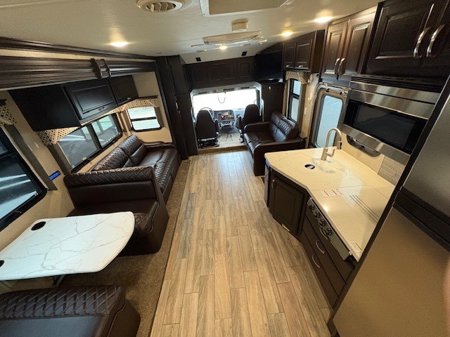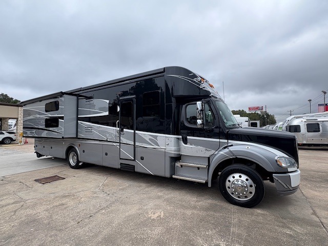 Dynamax keeps three things in mind when building these DX3 class C motorhomes, construction, power, and luxury. The construction features aluminum frames and gel-coat fiberglass walls. The power behind the vehicle is a mighty engine and automatic transmission that result in amazing torque and towing capacity. Some of the luxurious features are backup/side cameras that will make parking a breeze. There are also USB charging ports, convection microwave ovens, and day/night roller shades. So whether you are looking at the construction of a vehicle, the power behind a vehicle or the luxury of the interior be sure to check out these models today to examine all three in action.
