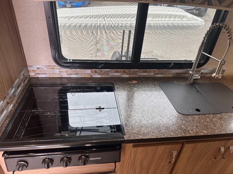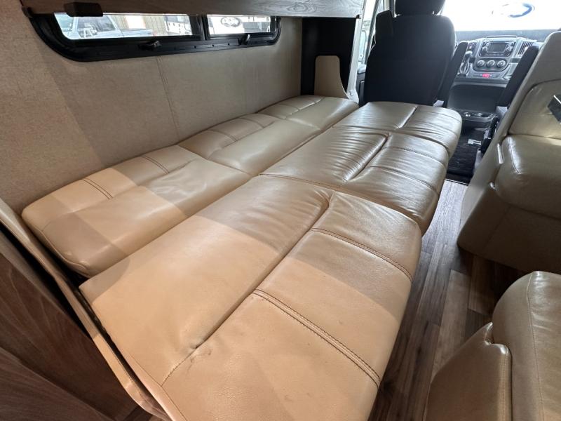 Just behind the driver's seat you will find a sofa that features two sets of seat belts to keep your rear travelers safe. Across from the sofa there is a dinette where you can enjoy your meals. When it is time to sleep you can lower the drop down bed above the sofa and the dinette to create more sleeping space for all.