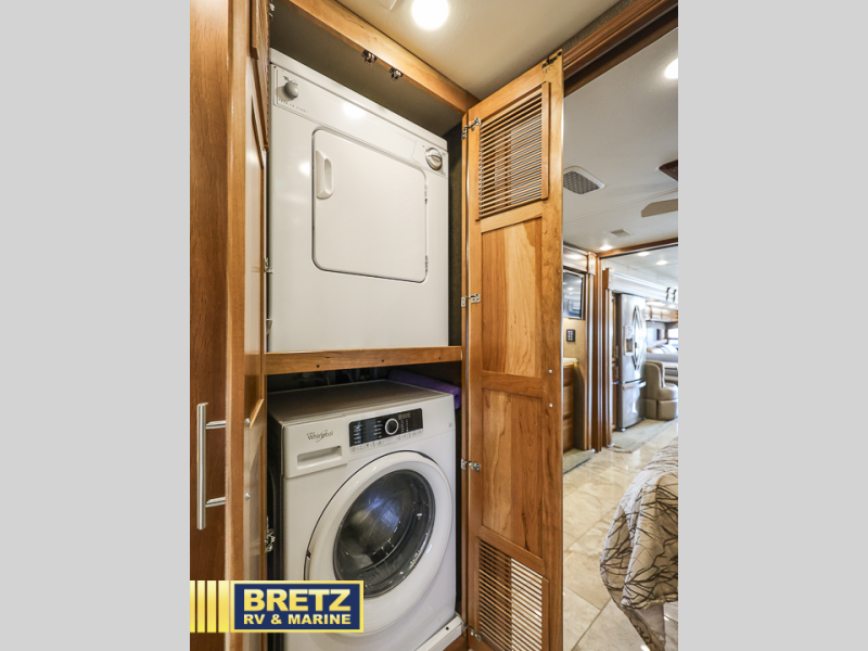 This Entegra Coach Aspire 44W class A diesel motor home features a king size bed for the owner, a rear full bath with a washer and dryer, a mid-cab half bathroom for everyone, and quad slides allowing plenty of space to entertain, plus more!