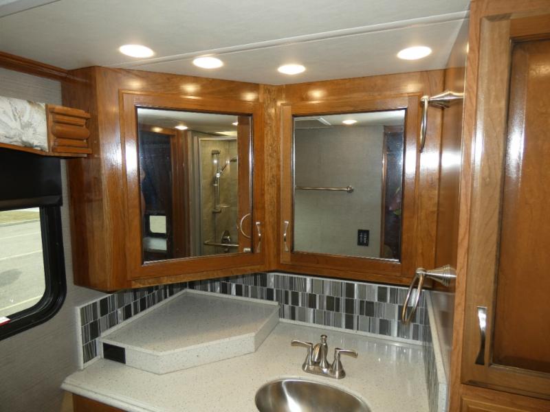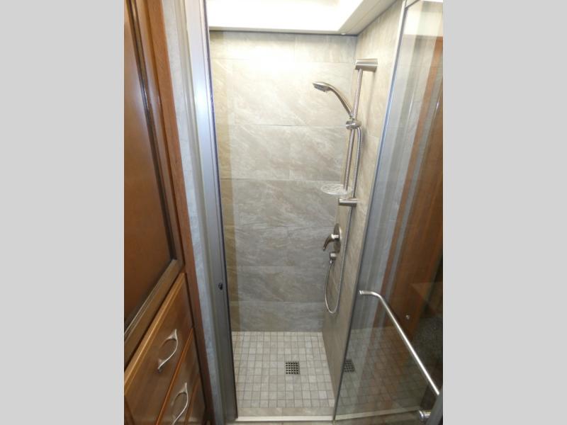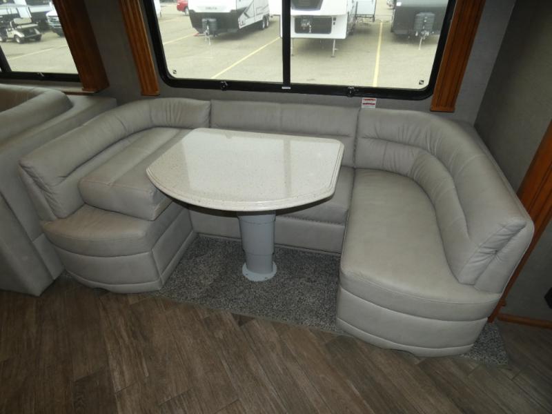 Come see just how fun your next camping trip can be! With triple slide outs you will enjoy plenty of room throughout this model. This Fleetwood Discovery 38K class A motor home is the first in it's class to offer an Aqua-hot tankless water heater and a tile shower! Along the roadside there is a full wall slide out with an 88" x 44" U-dinette where you can enjoy your meals. At night this area plus the L-sofa easily convert into additional sleeping space. The convenient half bathroom is just past the kitchen area. Plus in the rear you will find the master bathroom with a full seat and a tile shower. Along the outside wall of the half bathroom there is a 43" LED TV & electric fireplace plus so much more!