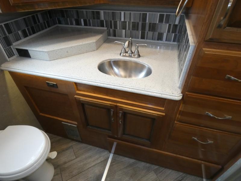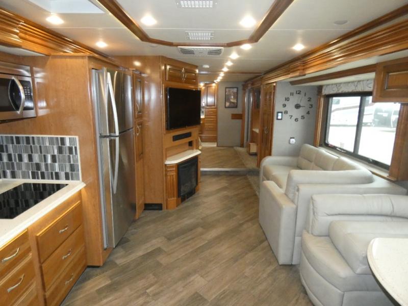 Are you ready to travel in style and comfort? Well, come step onboard the Fleetwood Discovery where you will immediately feel at home. There are also polished solid-surface countertops, a 22 cu. ft. refrigerator, and a tile backsplash in the kitchen. Along the exterior there are bus-style side swing luggage doors, an entertainment center with a 32" LED HDTV, and a power awning with LED light strip and wind sensor react. Each model is also equipped with a Firefly Integrations control panel and a central vacuum system which allows you to easily clean up, plus so much more!