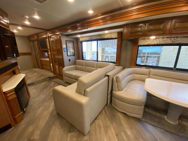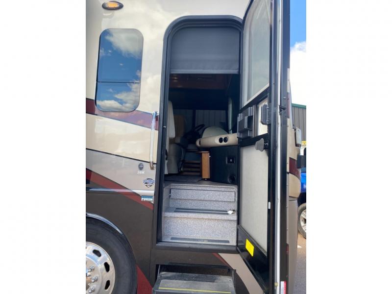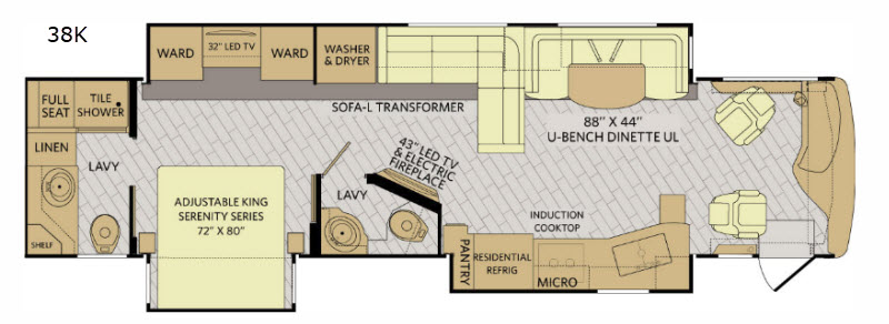 Come see just how fun your next camping trip can be! With triple slide outs you will enjoy plenty of room throughout this model. This Fleetwood Discovery 38K class A motor home is the first in it's class to offer an Aqua-hot tankless water heater and a tile shower! Along the roadside there is a full wall slide out with an 88" x 44" U-dinette where you can enjoy your meals. At night this area plus the L-sofa easily convert into additional sleeping space. The convenient half bathroom is just past the kitchen area. Plus in the rear you will find the master bathroom with a full seat and a tile shower. Along the outside wall of the half bathroom there is a 43" LED TV & electric fireplace plus so much more!