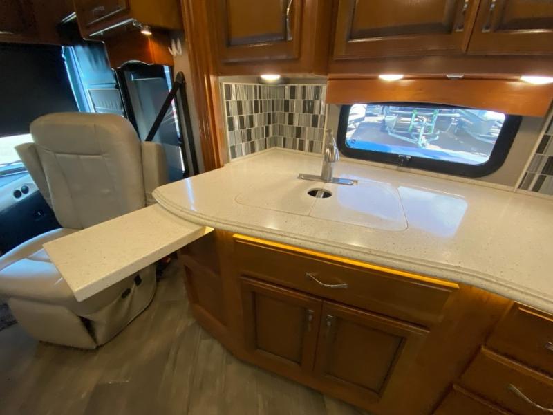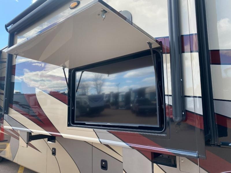 Are you ready to travel in style and comfort? Well, come step onboard the Fleetwood Discovery where you will immediately feel at home. Inside there are modern décor colors to choose from, as well as four stylish exterior colors. Inside you will find hardwood cabinet frames, doors & drawers, plus hardwood crown molding. There are also polished solid-surface countertops, a 22 cu. ft. refrigerator, and a tile backsplash in the kitchen. Along the exterior there are bus-style side swing luggage doors, an entertainment center with a 32" LED HDTV, and a power awning with LED light strip and wind sensor react. Each model is also equipped with a Firefly Integrations control panel and a central vacuum system which allows you to easily clean up, plus so much more!