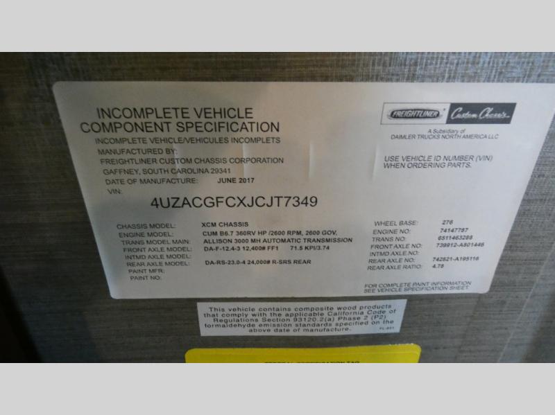 For your next cross-country road trip you will want this beautiful Discovery 39F class A motor home. When you are ready to relax then come sit and enjoy the comfortable 95" x 70" L-transformer sofa or lounge chair. Along the interior wall there is a 49" LED TV plus an electric fireplace. Throughout this model there is plenty of room with the quad slide outs, and in the rear bedroom you will find a king bed, a full length closet, and a stackable washer/dryer so you can easily keep up with your laundry while you are away from home and more!