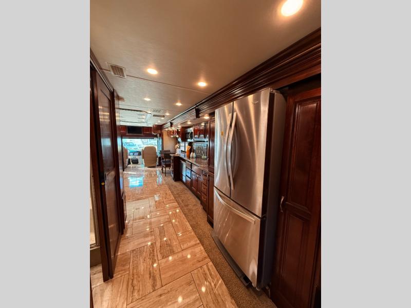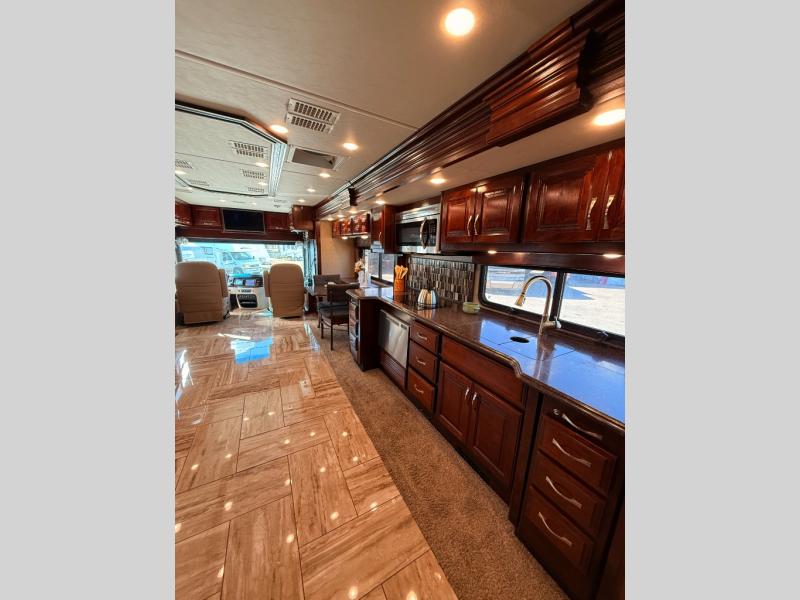With any Fleetwood Discovery LXE class A diesel coach you will enjoy the journey and the destination. The driver will appreciate the Smart steering wheel with tilt and telescoping feature, the touch screen radio with built-in GPS, the USB charger, and the Villa soft-touch heated captain's seat when moving down the road. The guests will love the luxurious feel of the polished solid surface kitchen countertop, the high-gloss solid hardwood cabinetry, the high-gloss hardwood crown molding, and the polishedporcelain tile throughout. Come see why everyone wants to discover these units!