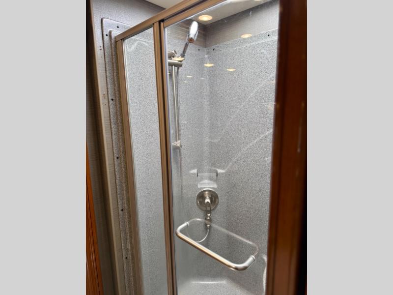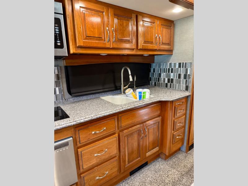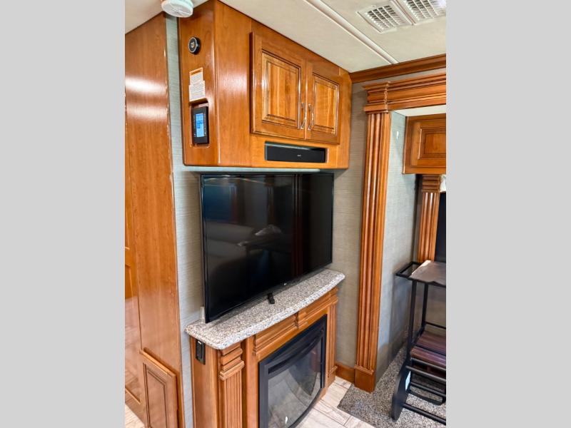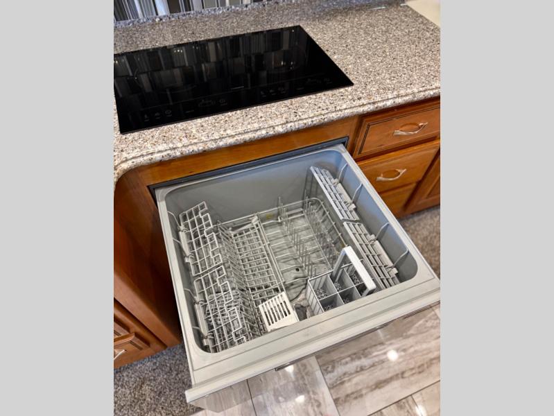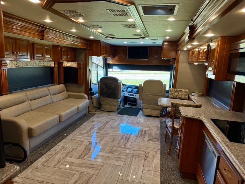 With any Fleetwood Discovery LXE class A diesel coach you will enjoy the journey and the destination. The driver will appreciate the Smart steering wheel with tilt and telescoping feature, the touch screen radio with built-in GPS, the USB charger, and the Villa soft-touch heated captain's seat when moving down the road. The guests will love the luxurious feel of the polished solid surface kitchen countertop, the high-gloss solid hardwood cabinetry, the high-gloss hardwood crown molding, and the polishedporcelain tile throughout. Come see why everyone wants to discover these units!