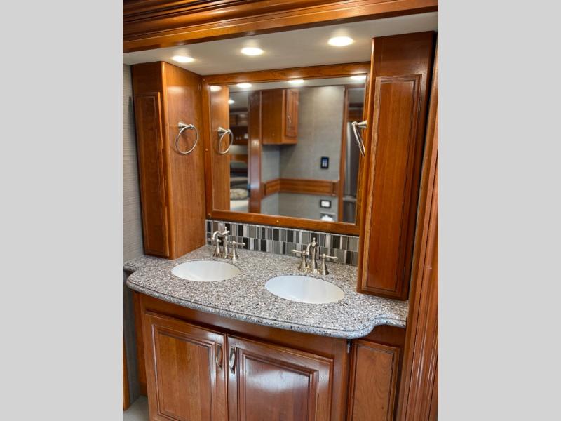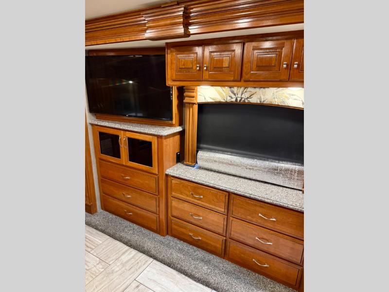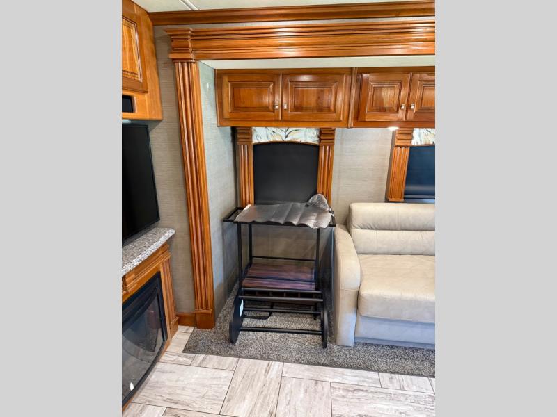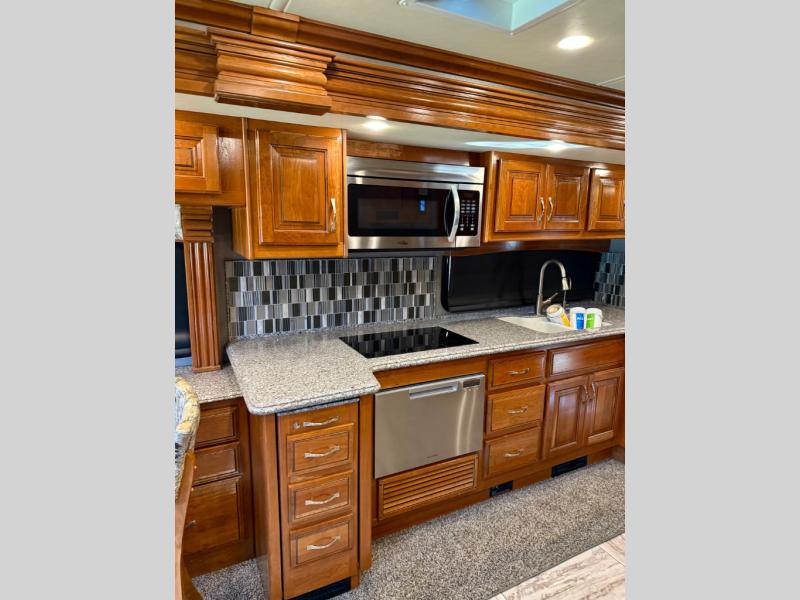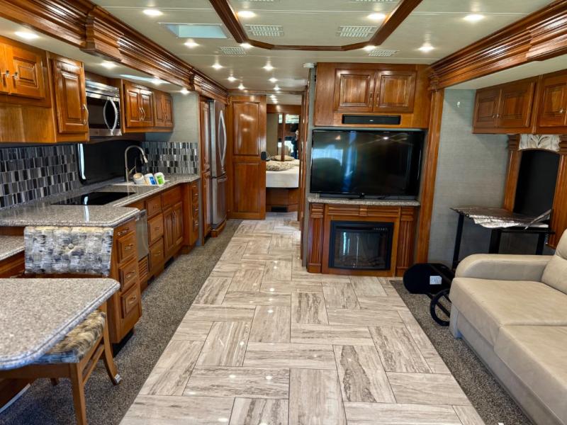 This Discovery LXE 39F class A diesel coach offers several standard upgrades you will enjoy while moving down the road, and at your destination. You can work and eat on the dinette with credenza, relax on the L-shaped transformer sofa and chair, and watch the 49" LED TV with fireplace below. If you enjoy cooking you will love the kitchen amenities including a residential refrigerator. The convenience of having dual sinks in the bathroom allows two people to brush their teeth at the same time. You will find plenty of storage throughout, plus much more!