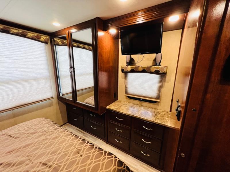 In the very rear you will find a relaxing space with a slide out queen size bed including nightstands. There is also a dresser/wardrobe opposite, a 24" LED TV, and second wardrobe for clothing storage, plus more.