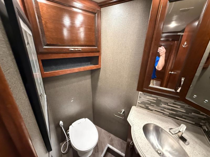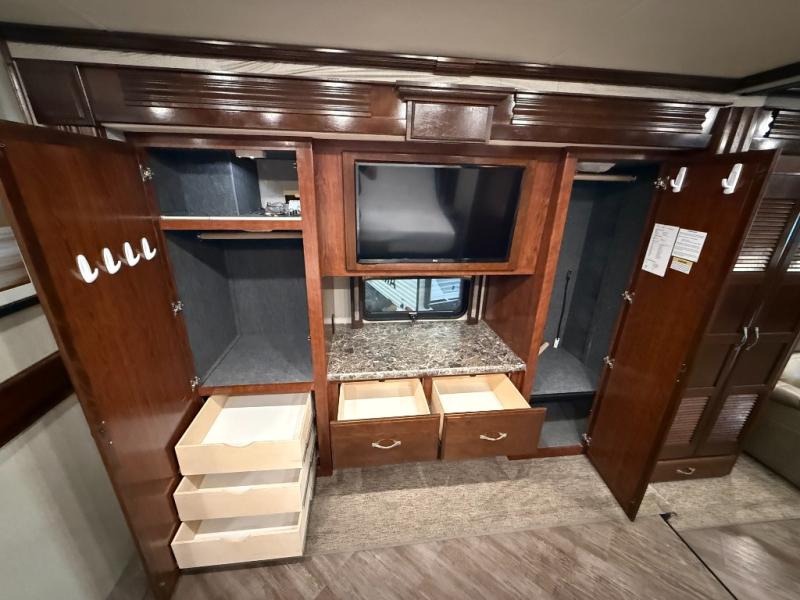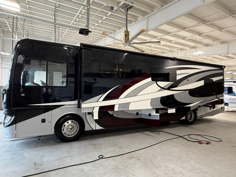 Come start your next cross country trip with this luxurious 38K Pace Arrow LXE diesel motor home. Model 38K provides everything you need to have a wonderful experience traveling from the triple slide outs which include a full wall slide out to the bath and a half there is plenty of room for your family! Enjoy your meals or a board game at the 88" x 44" u-dinette and after dinner come relax at the 81" x 70" transformer L-sofa. The stackable washer and dryer allows you to keep up with your laundry while you are away from home. In the rear bedroom you will find an articulating king Serenity Series bed plus plenty of storage with a full length wardrobe.