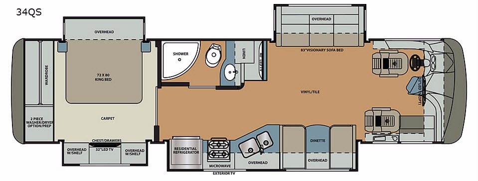 | TV Info | LR 40" LED TV, BR 32" LED TV, Opt. Cab 32" LED TV, Exterior 32" LED TV |