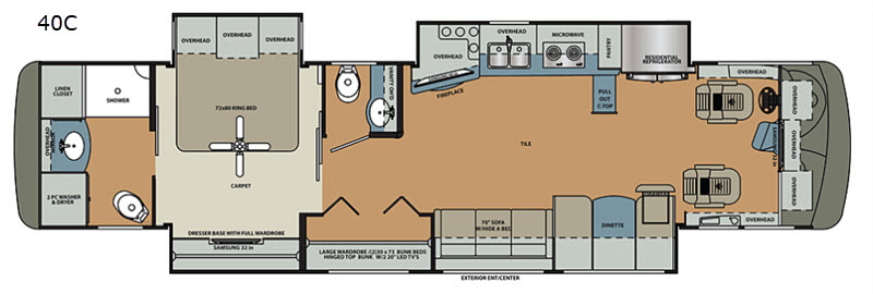 | TV Info | Cab 32" TV, LR 40" TV, BR 32" TV, (2) Bunk 20" TV's, 40" Ext. |