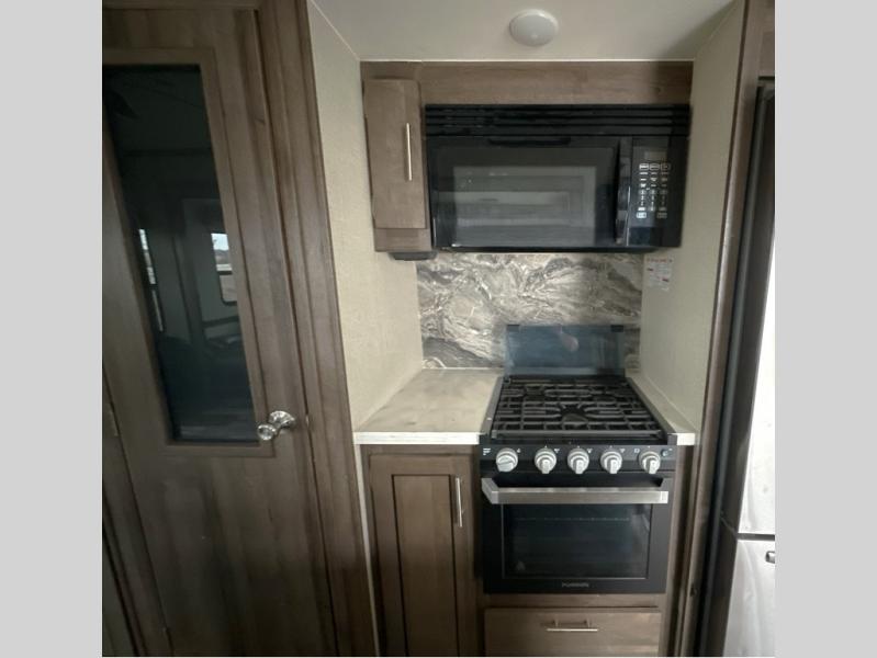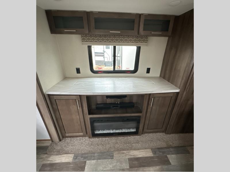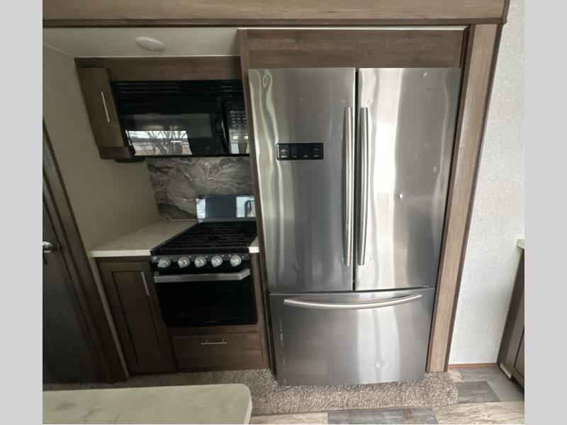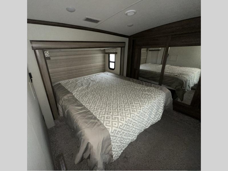 In any Forest River Blue Ridge you will experience a fifth wheel that offers luxury without breaking your budget. These models offer some fun features such as a key fob that operates the slide outs, awning, patio light, front jacks and rear jacks. A high gloss pigmented gel coats the exterior and the suspension system is constructed with a MOR/Ryde 3000. On the inside you will enjoy the residential appliances, crown molding throughout, and the solid hardwood maple raised panel cabinet doors and drawers.