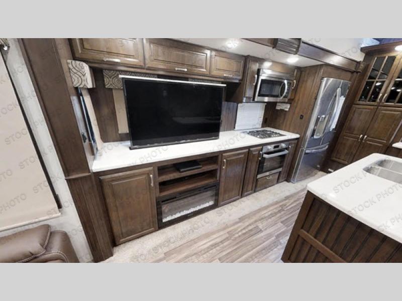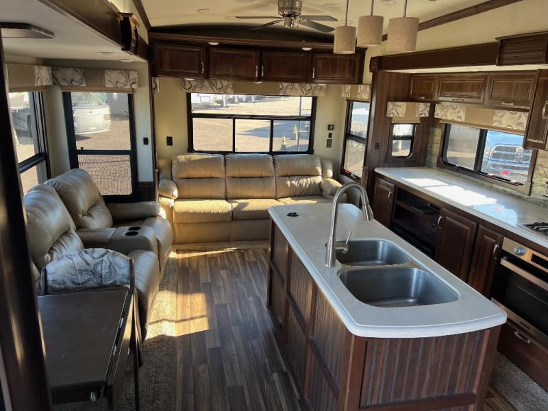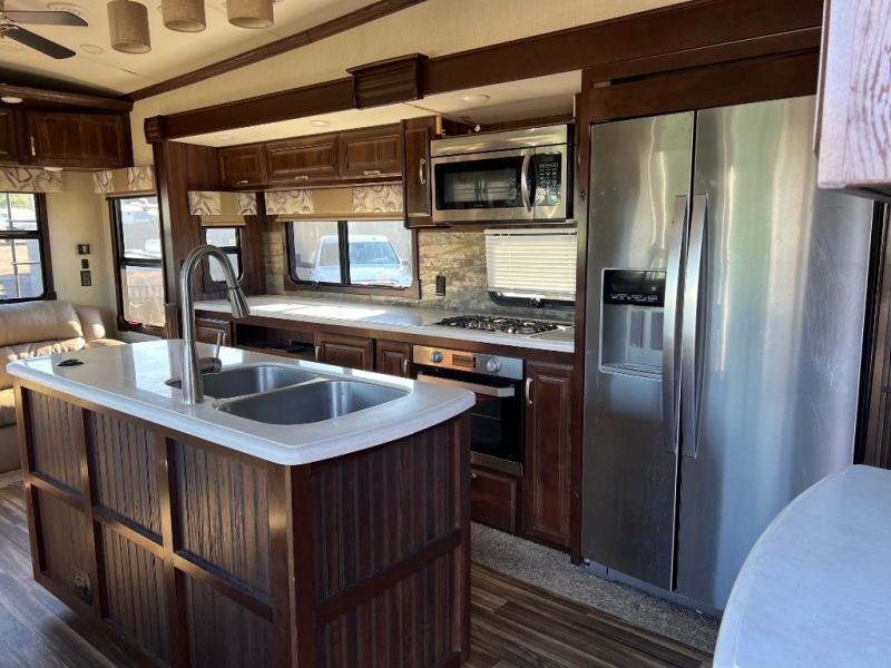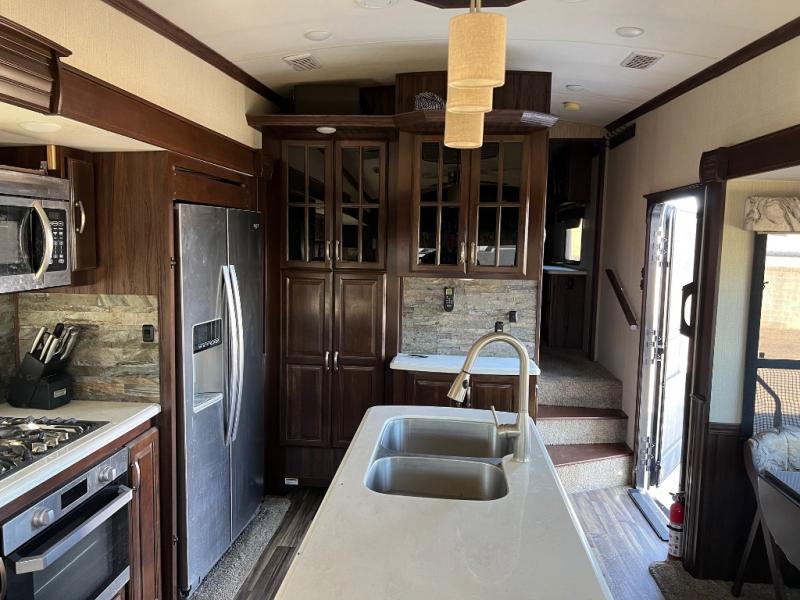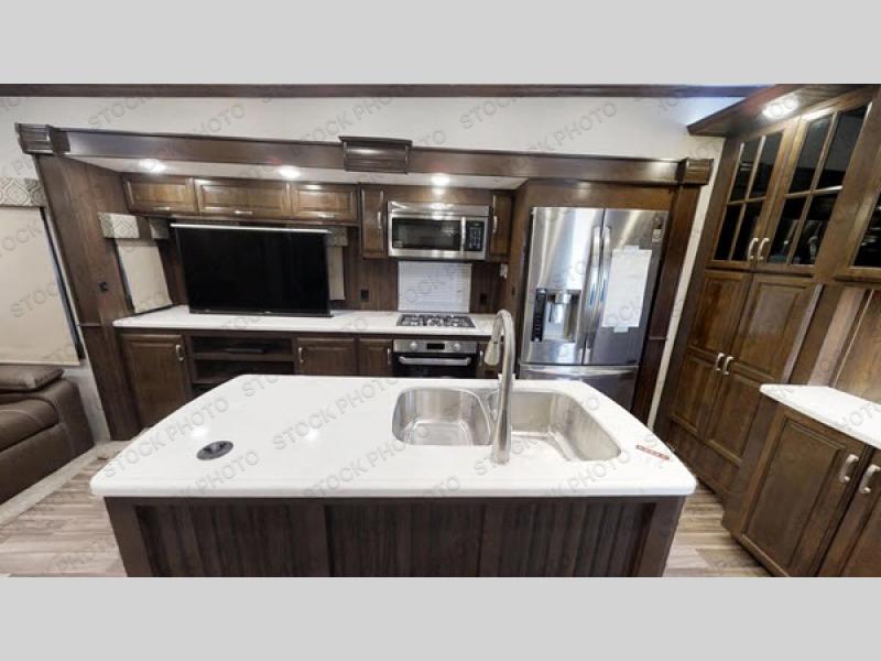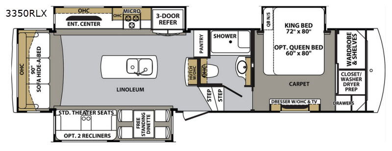Plan to camp in luxury with this 3350RLX Cardinal Luxury fifth wheel by Forest River. Meal prep will be a breeze thanks to the three door refrigerator, kitchen island, and double sink, which are all equipped with stainless steel appliances. At night, you can either relax in the theater seats at the entertainment center or jump into the plush king bed and rest up for your next adventurous day. Either way, you are sure to enjoy your camping experience in this fifth wheel!