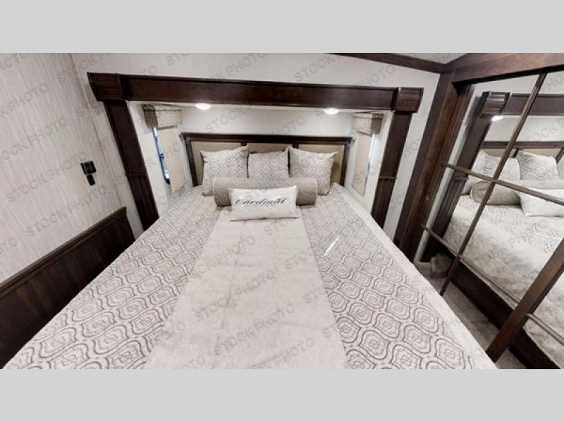 In any Cardinal Luxury fifth wheel you will find comfort and conveniences both inside and out as these units were built with your enjoyment in mind. Each unit features an all welded aluminum super structure frame and includes an Alpha Super Flex II TPO roof. Each Cardinal Luxury model is also 100" wide along with three to five slides to provide you with maximum space inside for 100% enjoyment with your family and friends. You will love the cathedral ceilings for added interior height, cedar lined closets to keep all of your clothing smelling as fresh as the outdoors, and beautiful Beauflor flooring that is backed by a 7 year cold crack warranty. You will also appreciate the at-home touches inside that give each unit a luxurious feel like crown molding ceiling and cabinet trim, wainscoting, and pendant lighting in the kitchen area. The outside of each coach also has a high end look with its premium high-gloss gel coat fiberglass that you have the option of choosing in one of four full body paint color schemes!