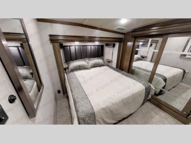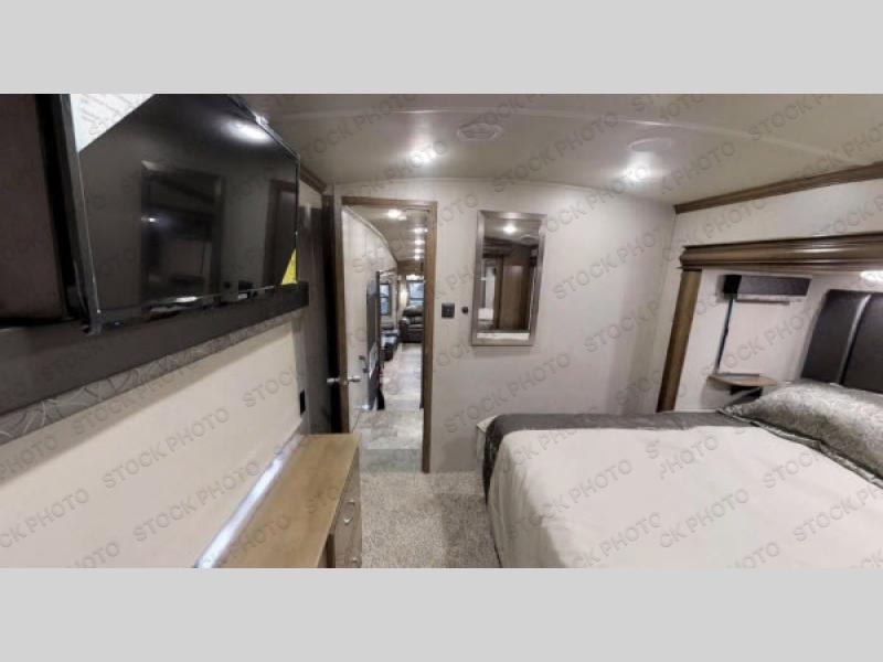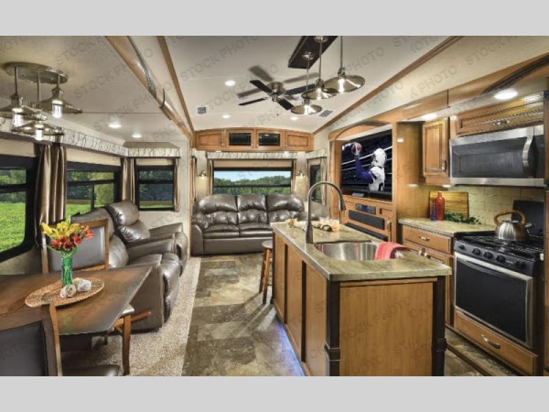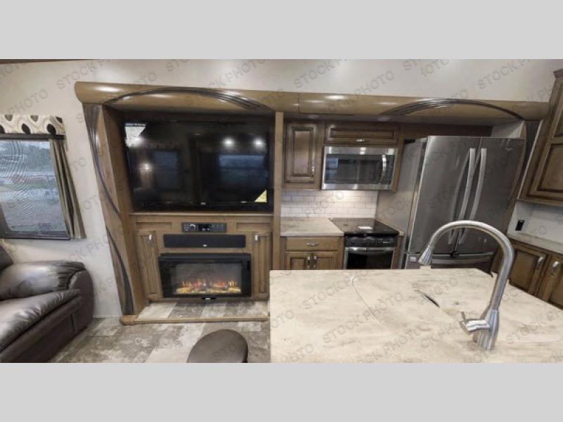 With any Forest River Cedar Creek Hathaway Edition fifth wheel you will find Nev-R-Adjust brakes which allow for improved stopping power in half the distance. There is also an E-Z Lube rubber equalization system and E-Z Lube heavy duty axles. In the bedroom you will find extra wide mirrored closet doors plus a walk-in closet and the radius ceilings give added headroom. The kitchen is everything that you would expect to find and more from the stainless steel 30" over the range microwave, to the recessed stainless steel large oven, you won’t be disappointed! If you prefer a bit more conveniences throughout then you will enjoy the Hathaway Edition Package which includes a 36" fireplace with remote and storage, solid surface LG counter tops with an oversized stainless steel sink, Congoleum Carefree designer flooring, On Demand hot water heater, and so much more!