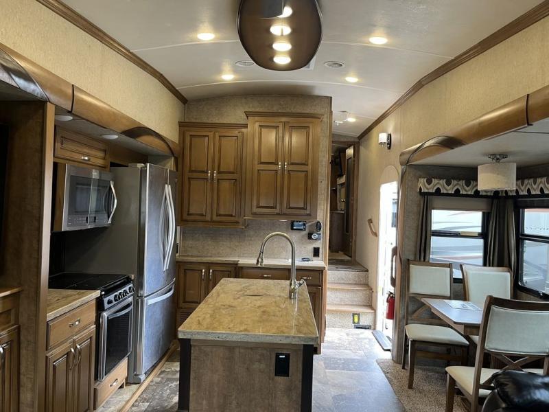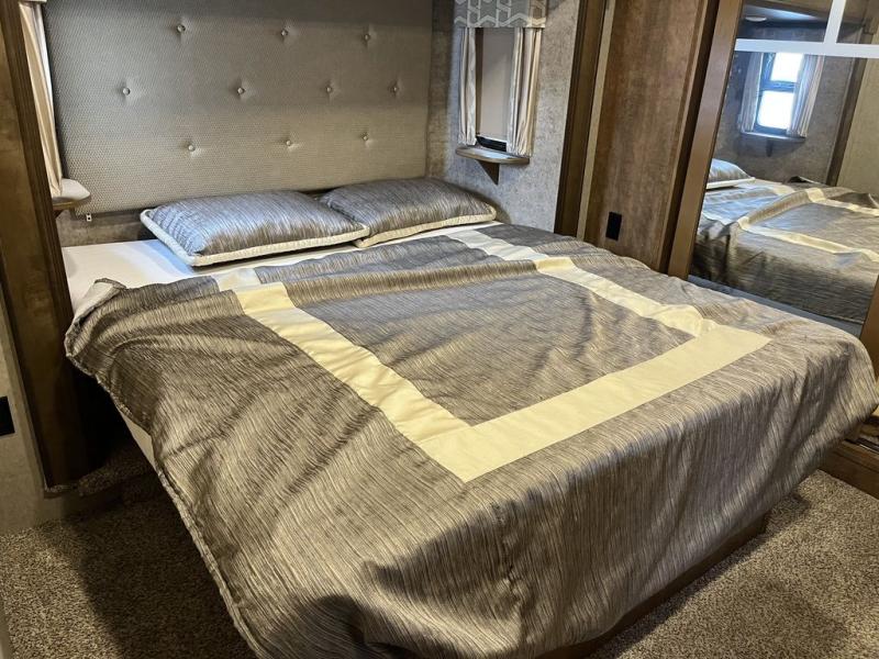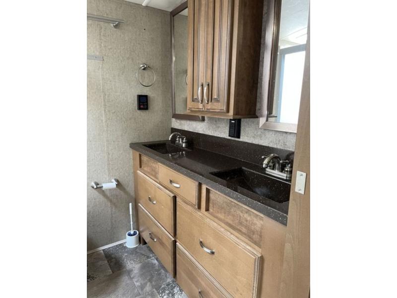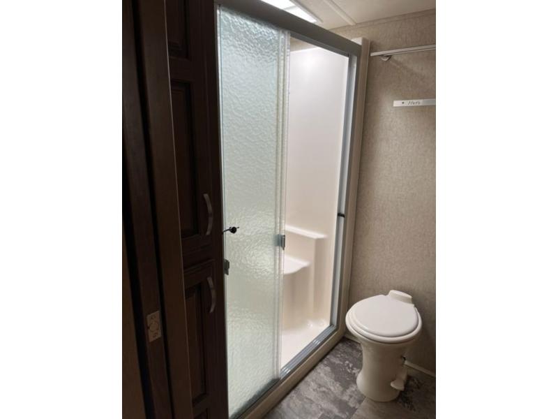 With any Forest River Cedar Creek Hathaway Edition fifth wheel you will find Nev-R-Adjust brakes which allow for improved stopping power in half the distance. There is also an E-Z Lube rubber equalization system and E-Z Lube heavy duty axles. In the bedroom you will find extra wide mirrored closet doors plus a walk-in closet and the radius ceilings give added headroom. The kitchen is everything that you would expect to find and more from the stainless steel 30" over the range microwave, to the recessed stainless steel large oven, you won’t be disappointed! If you prefer a bit more conveniences throughout then you will enjoy the Hathaway Edition Package which includes a 36" fireplace with remote and storage, solid surface LG counter tops with an oversized stainless steel sink, Congoleum Carefree designer flooring, On Demand hot water heater, and so much more!