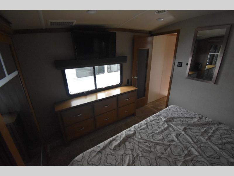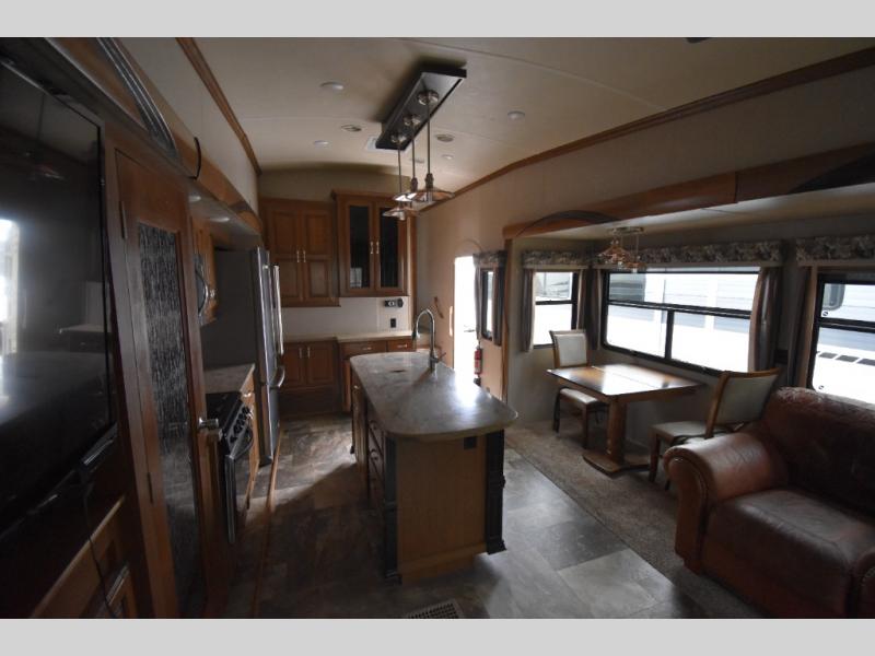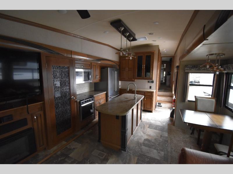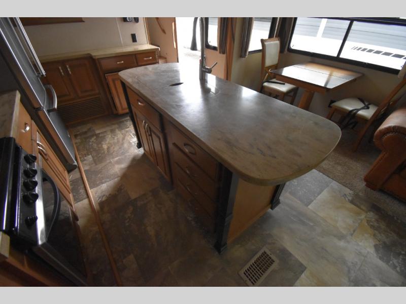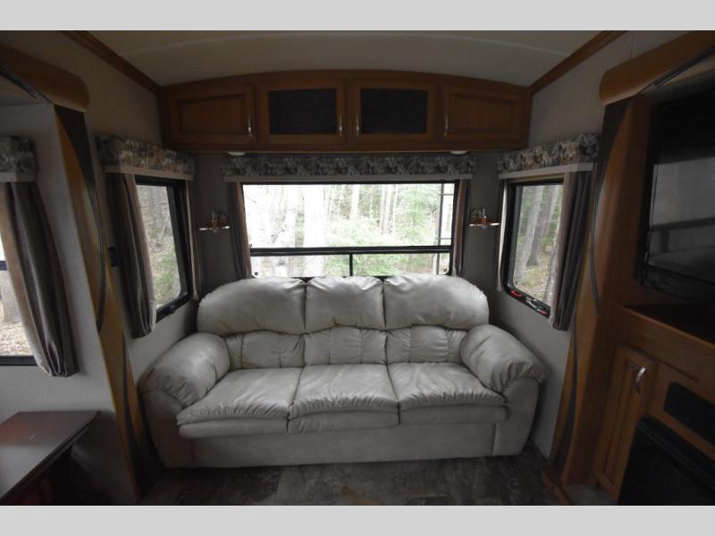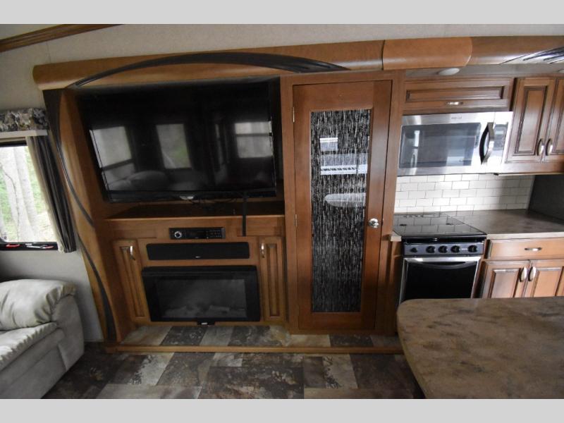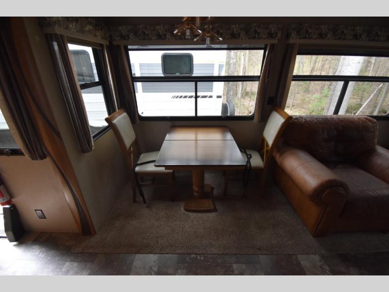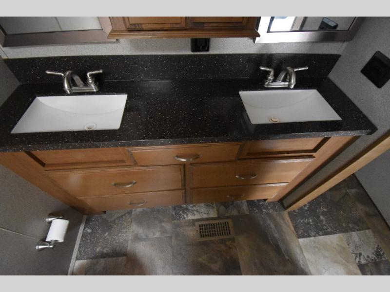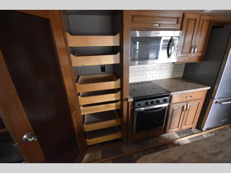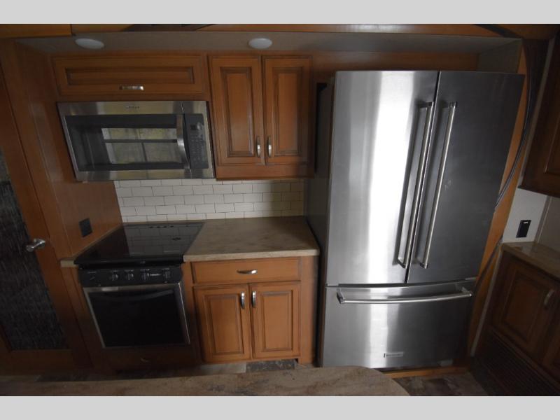 With any Forest River Cedar Creek Hathaway Edition fifth wheel you will find Nev-R-Adjust brakes which allow for improved stopping power in half the distance. There is also an E-Z Lube rubber equalization system and E-Z Lube heavy duty axles. In the bedroom you will find extra wide mirrored closet doors plus a walk-in closet and the radius ceilings give added headroom. The kitchen is everything that you would expect to find and more from the stainless steel 30" over the range microwave, to the recessed stainless steel large oven, you won’t be disappointed! If you prefer a bit more conveniences throughout then you will enjoy the Hathaway Edition Package which includes a 36" fireplace with remote and storage, solid surface LG counter tops with an oversized stainless steel sink, Congoleum Carefree designer flooring, On Demand hot water heater, and so much more!
