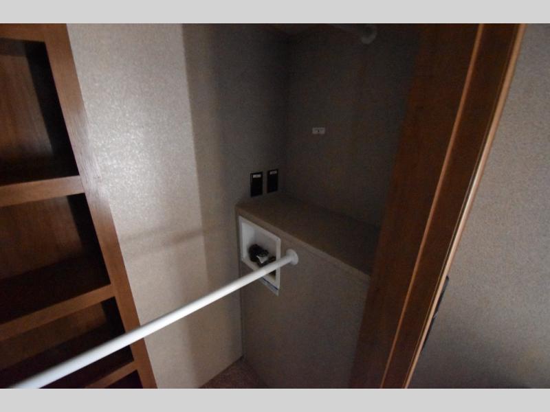 Bring all of the comforts of home with you when you choose to camp with this triple slide out Cedar Creek Hathaway Edition 36CK2 fifth wheel. In the kitchen there is plenty of work space to prepare your favorite meals. Clean up is a breeze at the island. Here you will find a double sink plus if you choose to add the optional dishwasher then your time cleaning up will be cut in half! When you are ready to call it a day, then head up to the private front bedroom. Here you will find a king bed and plenty of storage with the large wardrobe and dresser. This room has also been prepped for a washer and dryer so now you can easily keep up with your laundry while you are away from home!