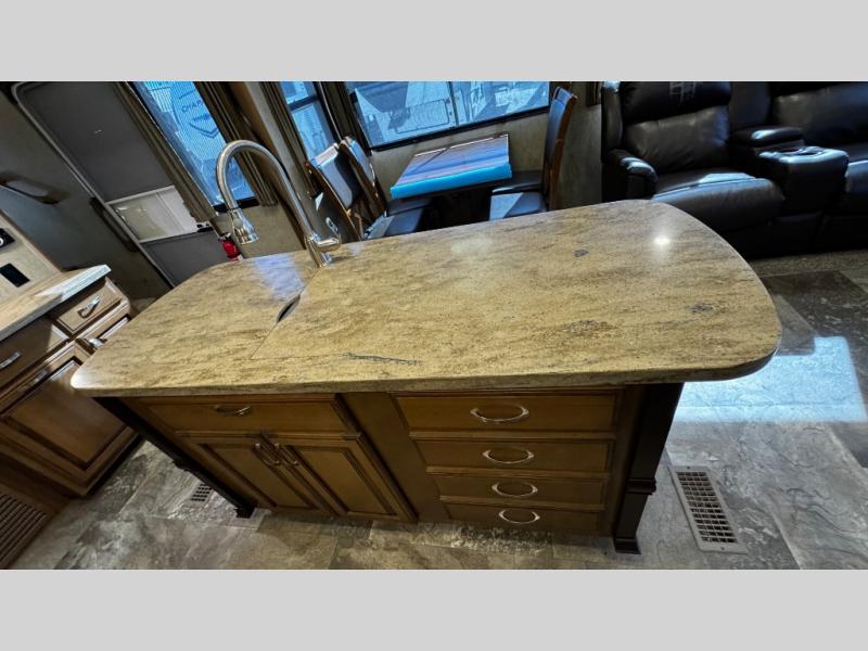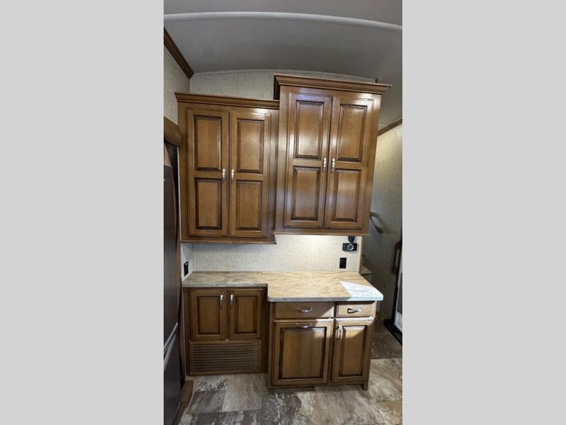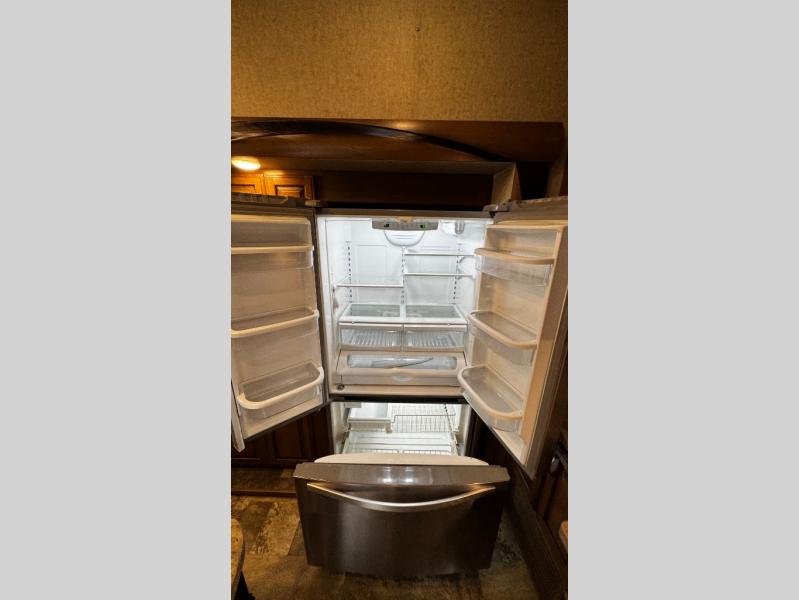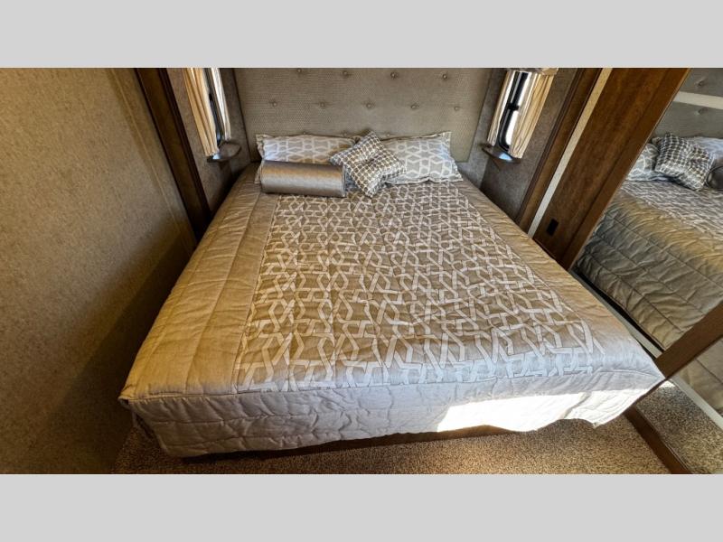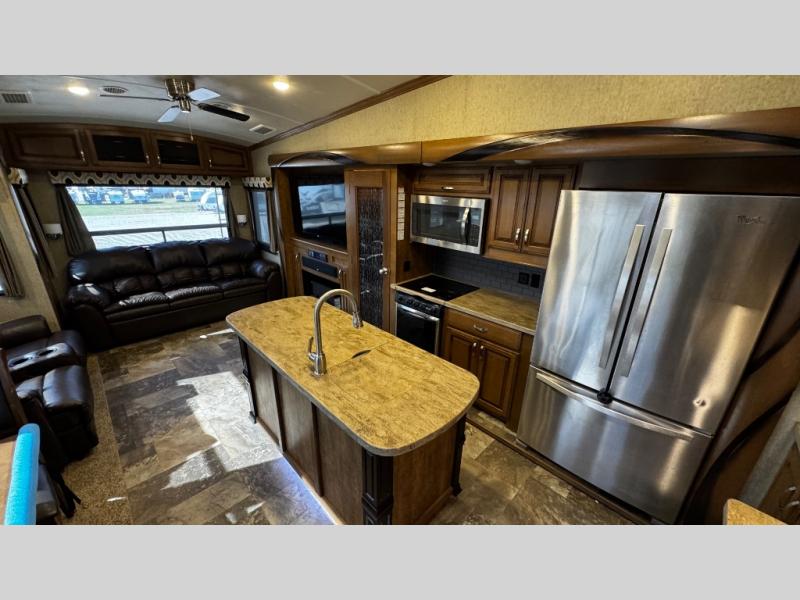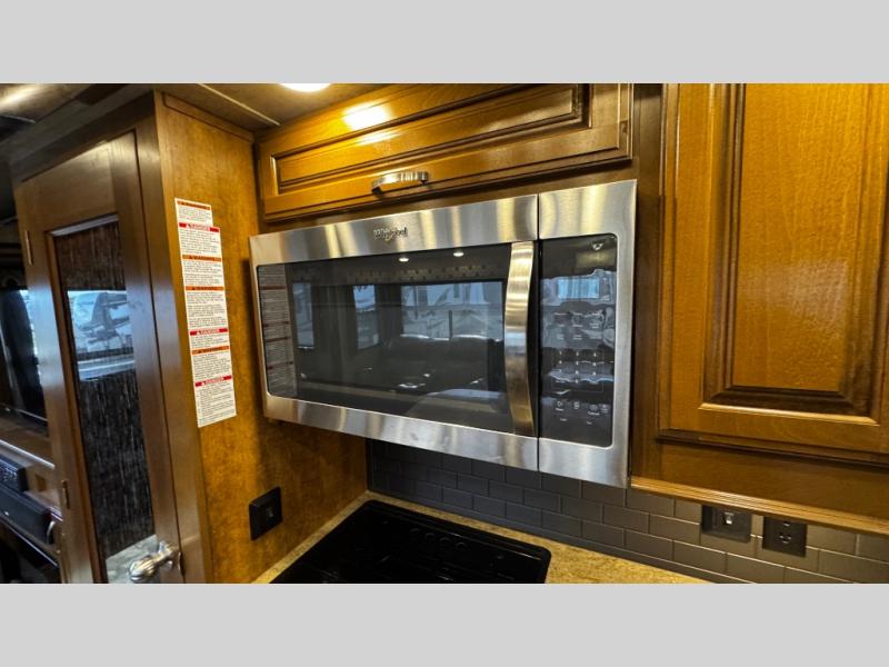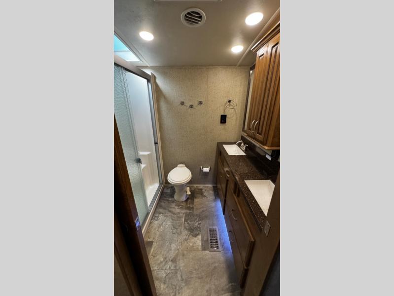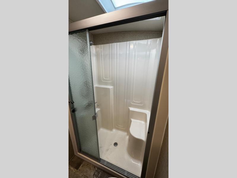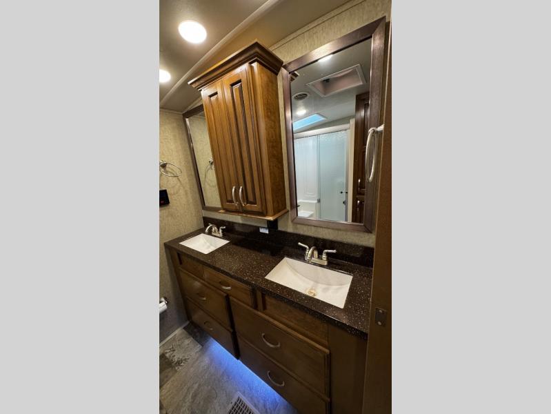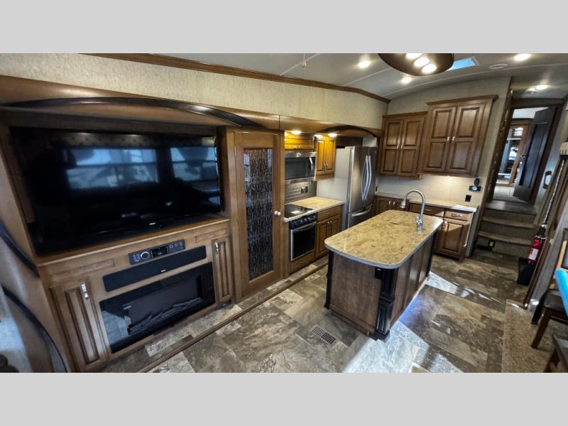 With any Forest River Cedar Creek Hathaway Edition fifth wheel you will find Nev-R-Adjust brakes which allow for improved stopping power in half the distance. There is also an E-Z Lube rubber equalization system and E-Z Lube heavy duty axles. In the bedroom you will find extra wide mirrored closet doors plus a walk-in closet and the radius ceilings give added headroom. The kitchen is everything that you would expect to find and more from the stainless steel 30" over the range microwave, to the recessed stainless steel large oven, you won’t be disappointed! If you prefer a bit more conveniences throughout then you will enjoy the Hathaway Edition Package which includes a 36" fireplace with remote and storage, solid surface LG counter tops with an oversized stainless steel sink, Congoleum Carefree designer flooring.