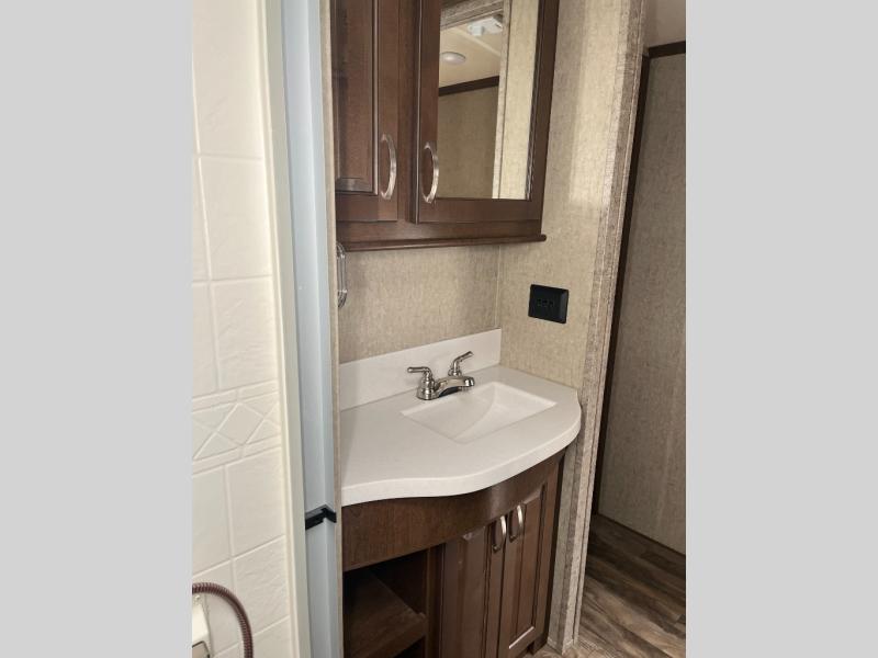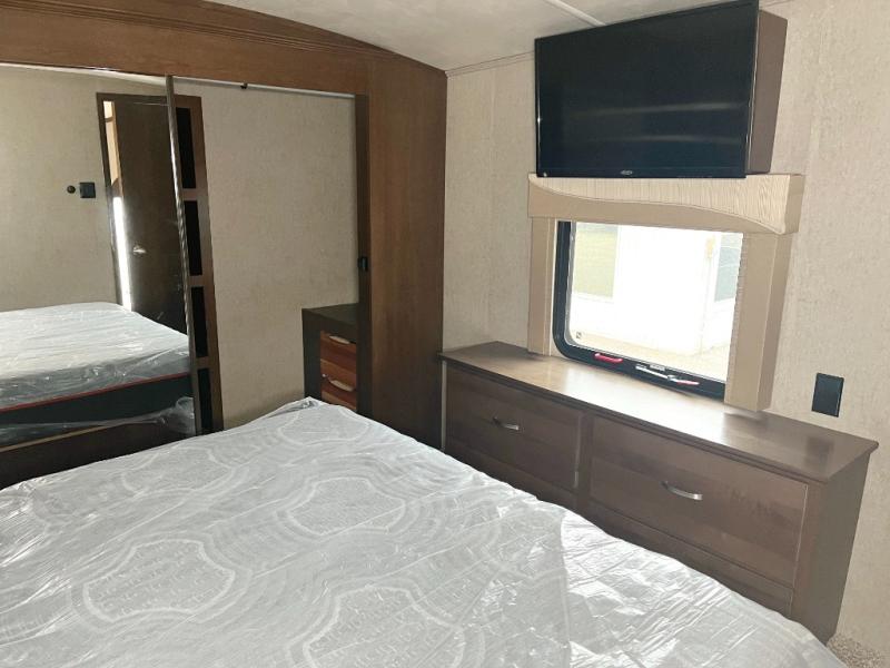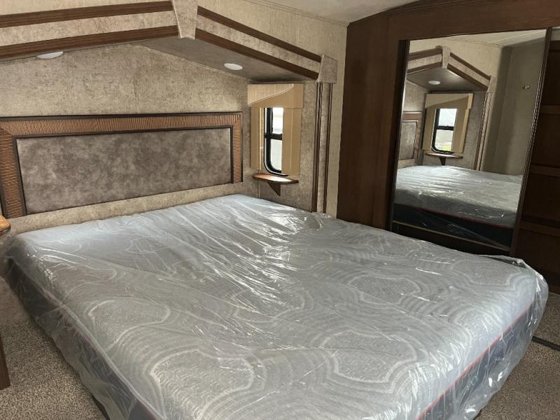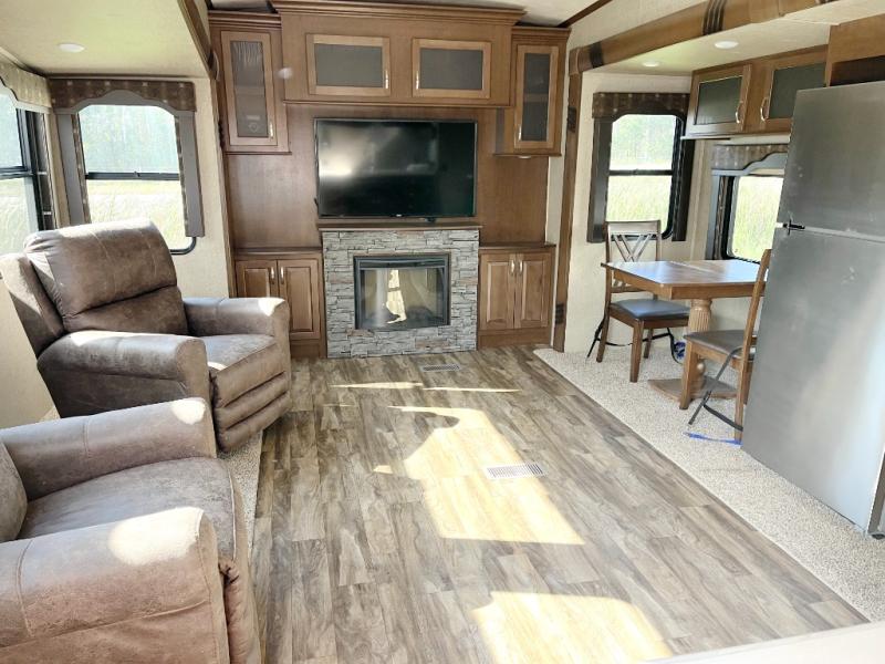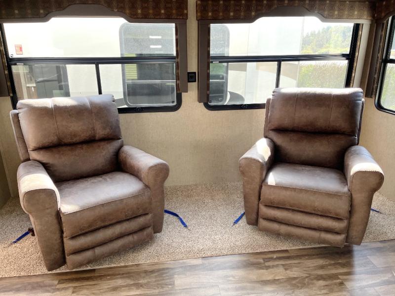 With any Forest River Cedar Creek Silverback Edition fifth wheel you will find cathedral slide rooms in the main and bedroom slides which help to open up the living space throughout each model. You will enjoy a good night’s rest of the Serta residential mattress plus the deluxe blackout roller shades add the privacy you desire. The kitchen is everything that you would expect to find and more from the recessed stove top with glass cover and front, full panel backsplash, to the stainless steel under-mounted sink, you won’t be disappointed! The 36" electric fireplace, Congoleum Designer Carefree plank flooring and Shaw carpeting are just a few of the other comforts you will find throughout each model and more!