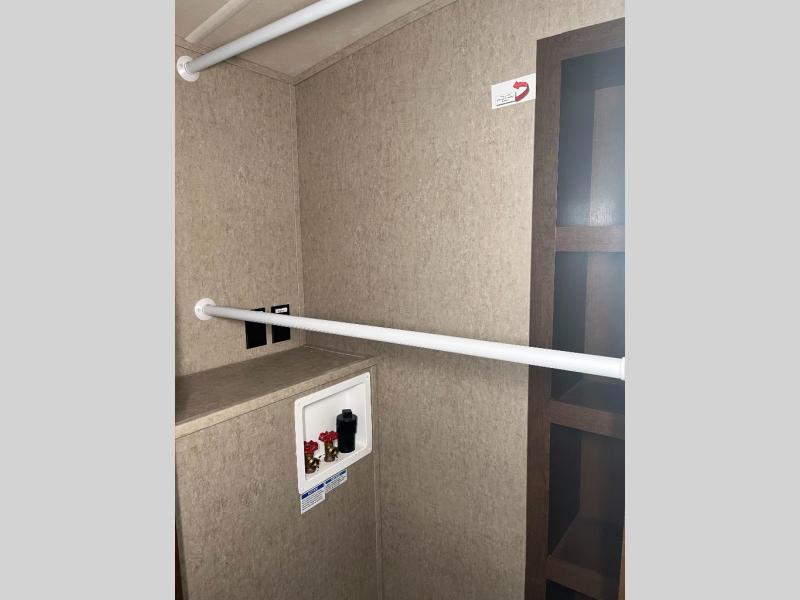 Start your next camping trip with this Cedar Creek Silverback fifth wheel 29RE by Forest River. This model features triple slide outs and two of the slide outs are in the rear of this model which helps to maximize the floor space. Enjoy watching your favorite shows or a movie or two at the rear entertainment center and for those chilly evenings you can enjoy the electric fireplace. The kitchen area features a free-standing table with seating for four plus along the interior wall there is extra counter space and a double sink. When you are ready to call it a day, then head up the stairs to the front bedroom. Here you will find a queen bed or you can choose an optional king. The front wardrobe features plenty of storage plus it is also prepped for a stackable washer and dryer and more!