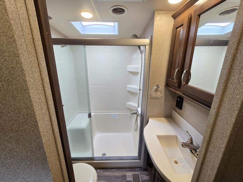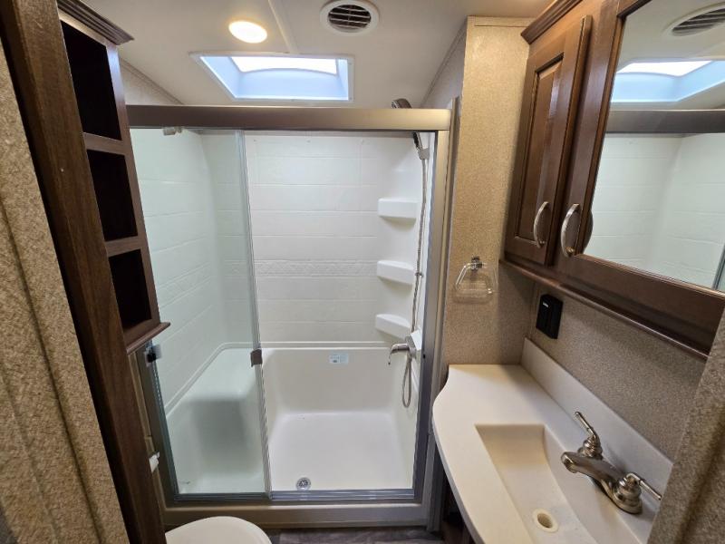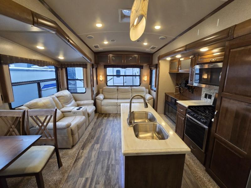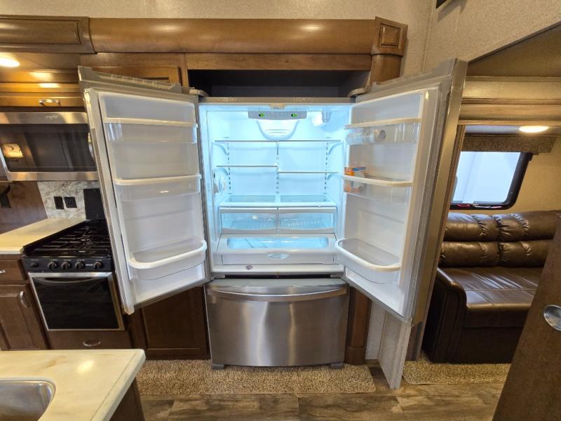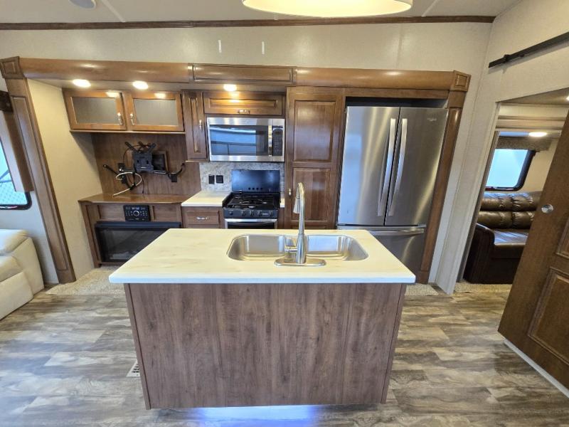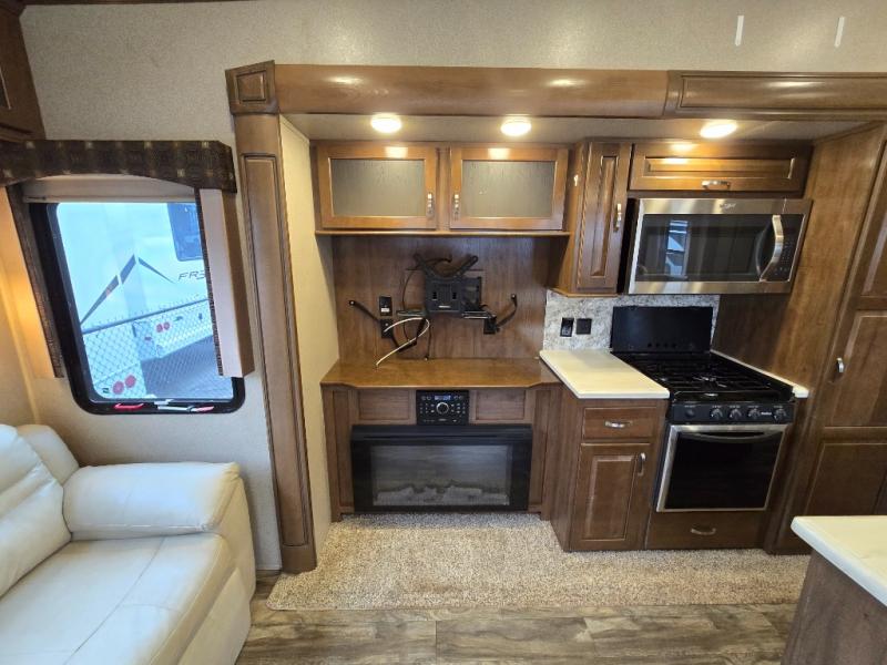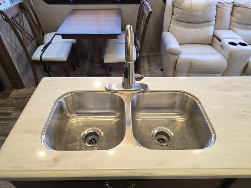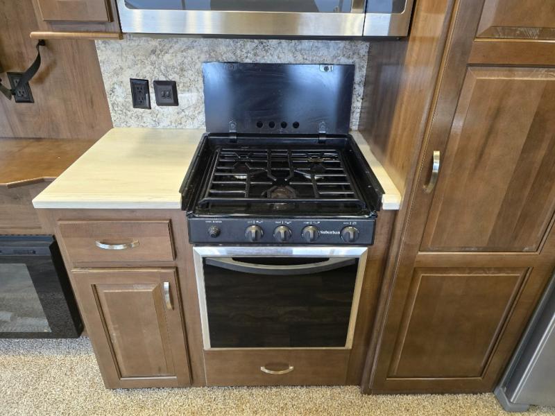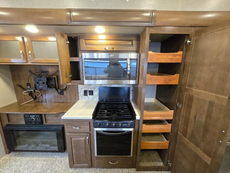 With any Forest River Cedar Creek Silverback Edition fifth wheel you will find cathedral slide rooms in the main and bedroom slides which help to open up the living space throughout each model. You will enjoy a good night’s rest of the Serta residential mattress plus the deluxe blackout roller shades add the privacy you desire. The kitchen is everything that you would expect to find and more from the recessed stove top with glass cover and front, full panel backsplash, to the stainless steel under-mounted sink, you won’t be disappointed! The 36" electric fireplace, Congoleum Designer Carefree plank flooring and Shaw carpeting are just a few of the other comforts you will find throughout each model and more!