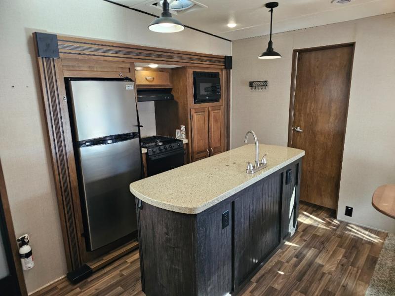 The Chaparral Lite 29BHS combines comfort, function, and thoughtful design in a family-friendly floorplan. With its private bunkhouse, large living area, and premium kitchen features, it’s perfect for families or groups who love extended camping adventures. This pre-owned model delivers the high-end amenities of a full-size fifth wheel in a lighter, easier-to-tow package—ideal for travelers who want space without sacrificing mobility.
