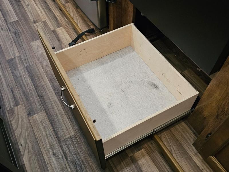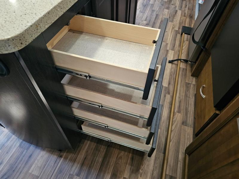 Additional slide-out featuring refrigerator and extra counter space