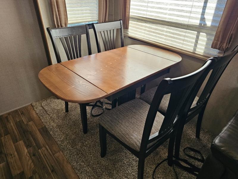 Free-standing dinette and tri-fold sofa slide-out create a roomy lounge and dining area