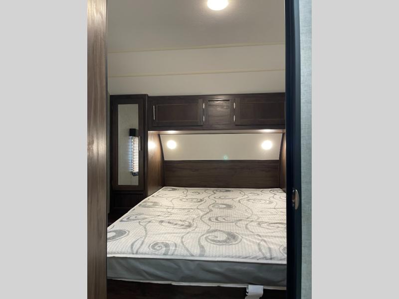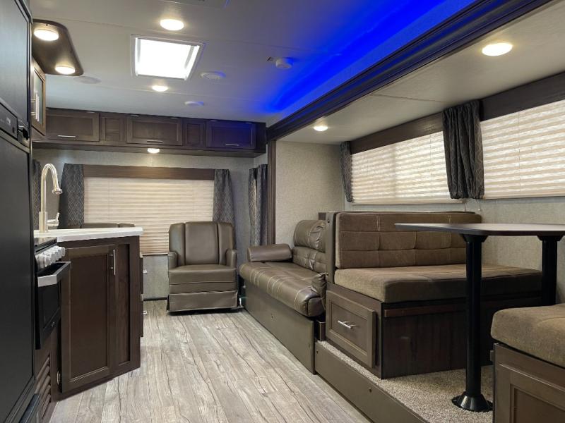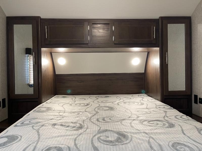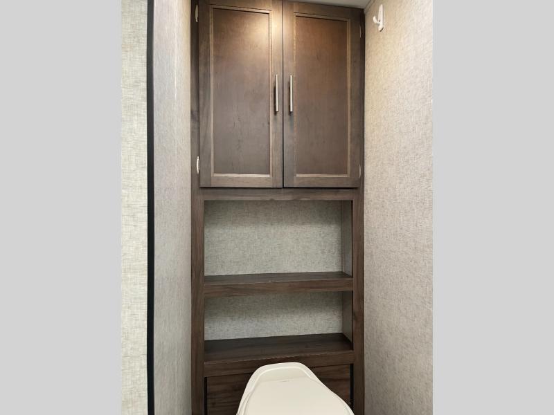 You will also find plenty of overhead cabinets throughout the travel trailer, as well as outside storage, an outside LCD TV mount, and so much more!