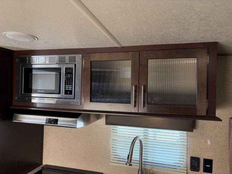 All Cherokee Grey Wolf models are quality built with distinct features and superior comfort in mind. And, they are all set at an affordable price point. So, when you get the opportunity to escape the hustle and bustle of everyday life and enjoy all the beauty and wonder that an outdoor adventure holds, the Cherokee Grey Wolf is ready and waiting to help you relax and unwind. Each unit features an aerodynamic radius front which improves towability, and you will have no trouble hitching up even in the dark with the lighted power tongue jack. The nitro filled tires help keep the tow going smoothly down the road even on a bumpy surface. Inside, you will enjoy comfortable furnishing, shaker style cabinetry, and large overhead cabinets for plenty of storage. There are two 20 lb. LP bottles, a patio awning for added outdoor living space, plus plenty of exterior storage for your camping gear. These units also offer solar prep for when you choose to do a little boon-docking off the beaten path, and they are also wired for a back up camera if you choose to add that option as well. Come choose one of the Cherokee Grey Wolf travel trailers or toy haulers, and let everyday life take a backseat so you can rest and unwind for awhile!
