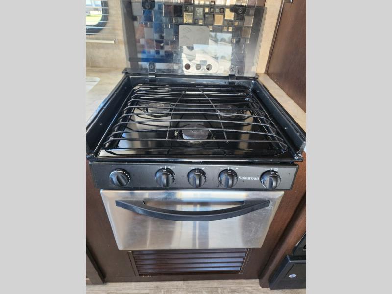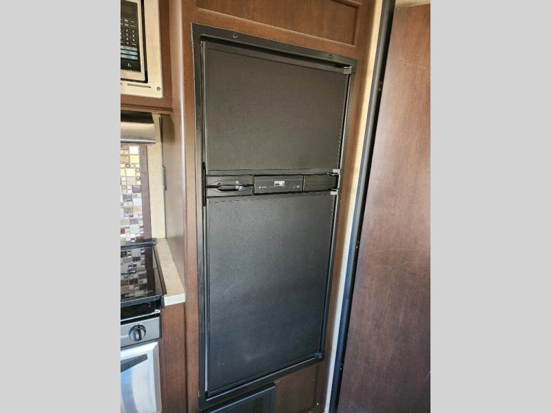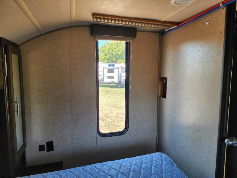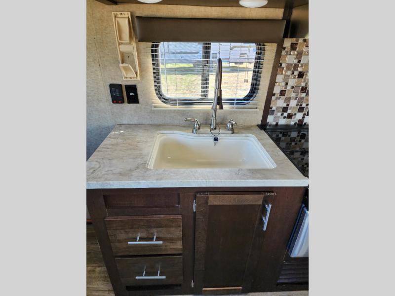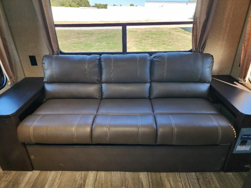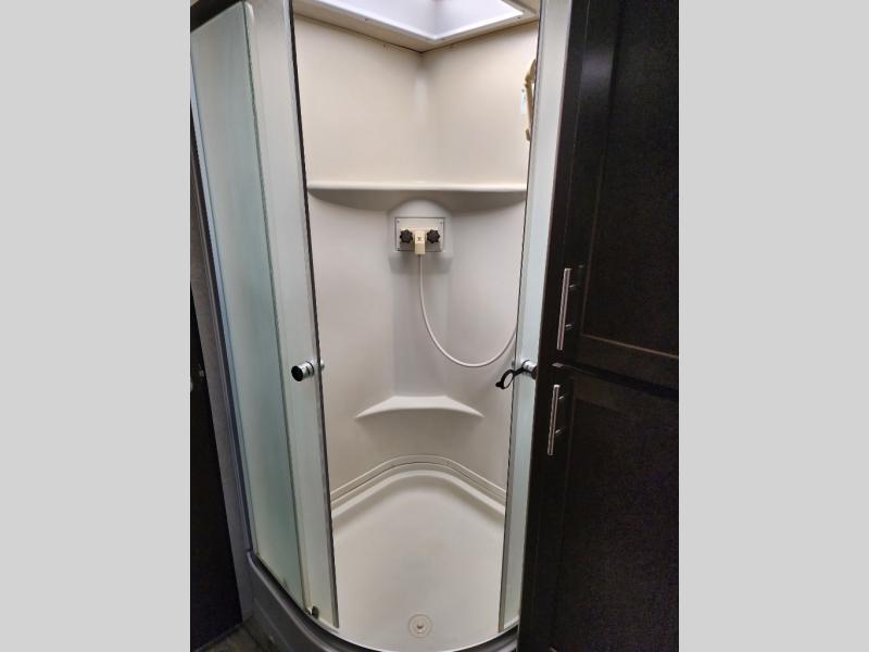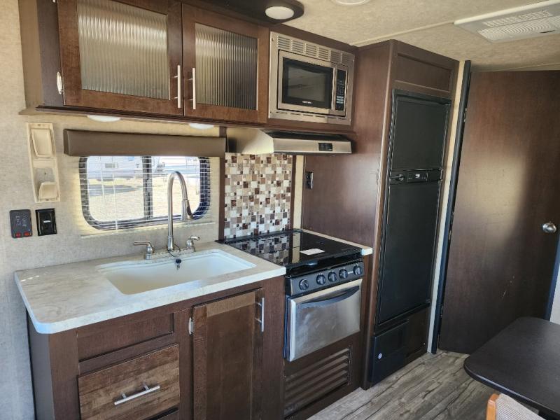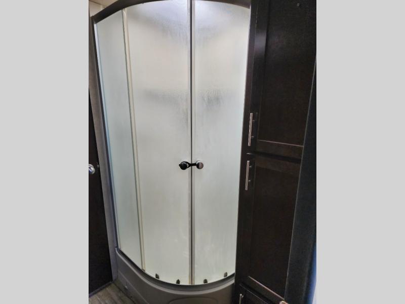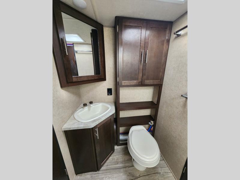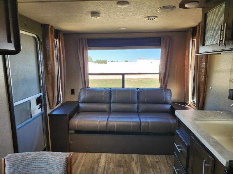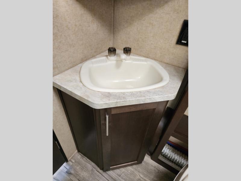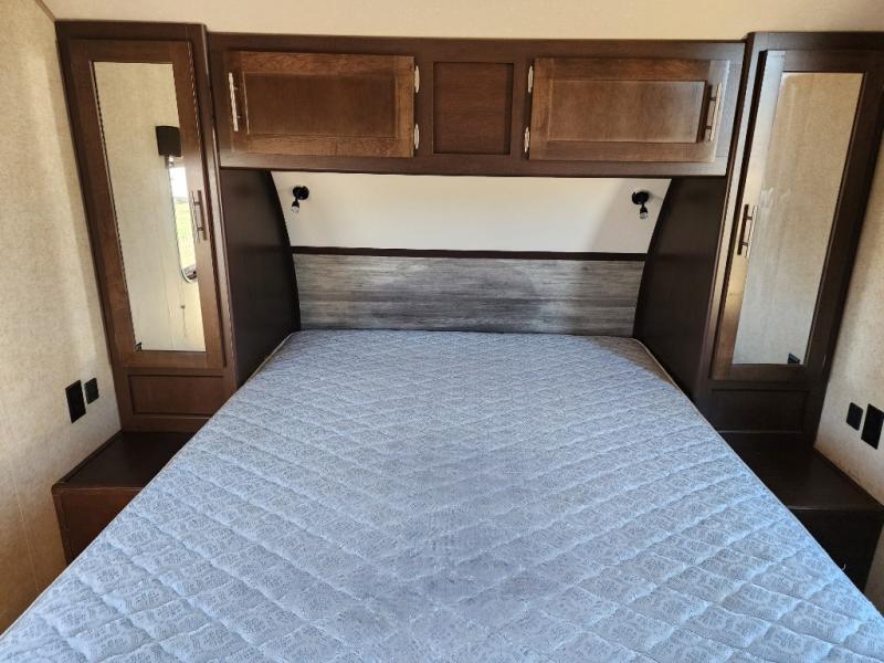 Enjoy your time exploring and sightseeing knowing that your home base set up back at camp will take care of you with plenty of space to relax. Hit the sofa after a fun-filled day for a break to rest or to enjoy a good book. The kitchen offers everything you need to cook up some yummy meals when you get hungry. And, for ultimate relaxation when you just need to get re-energized, jump in the neo-angle shower then head to bed where you will get a great night's sleep on the queen bed up front. The pass-through bath is quite spacious as you have the entire width of the trailer included. You will also find that there is ample storage for your things between bedside nightstands and wardrobes, overhead cabinets throughout, as well as outside storage too!