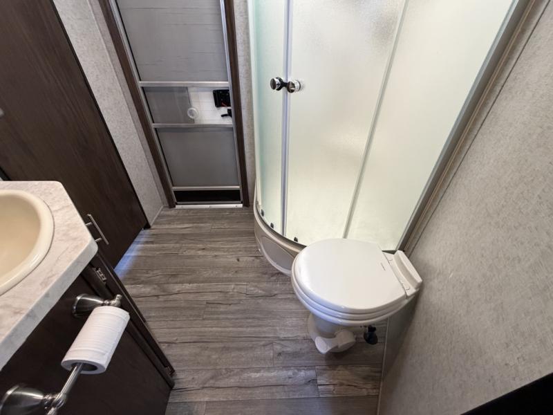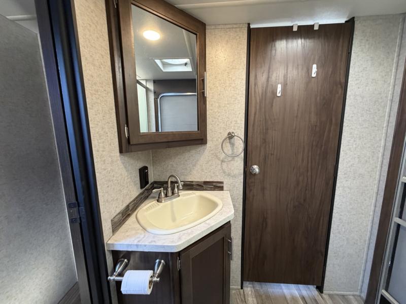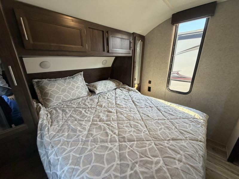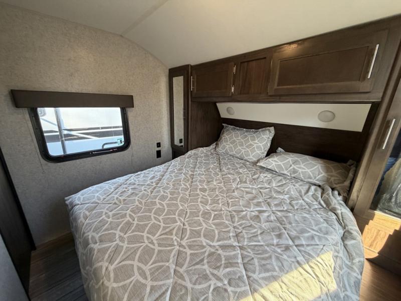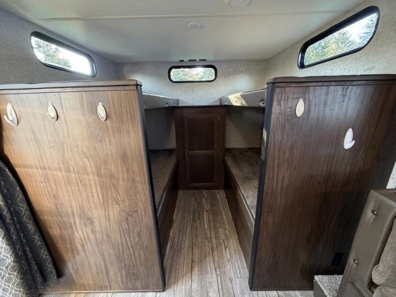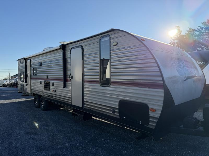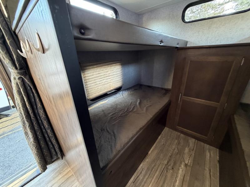 Your larger family will love spending weekends away with this Cherokee Grey Wolf as their home base. Model 29TE offers sleeping for six to eight comfortably depending on the bedroom choice you make. The standard set up features quad bunks in the rear behind a 3/4 wall that is open up above the top bunks, or you can select a queen bed in place of the bunks for sleeping along with the standard private queen bedroom up front. There are dual entry/exit doors which makes accessing the trailer easy for everyone. The door closest to the front leads into a full bath with neo-angle shower and a second entry right into the front bedroom. You will appreciate the abundant storage throughout this unit including large overhead cabinets, a walk-in pantry, plus numerous outside storage compartments for all of your outdoor gear, and so much more!
