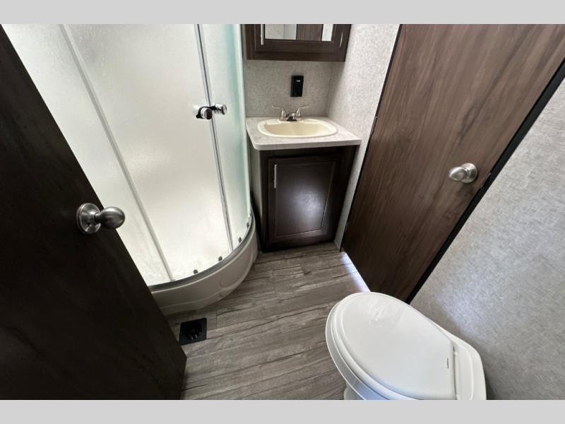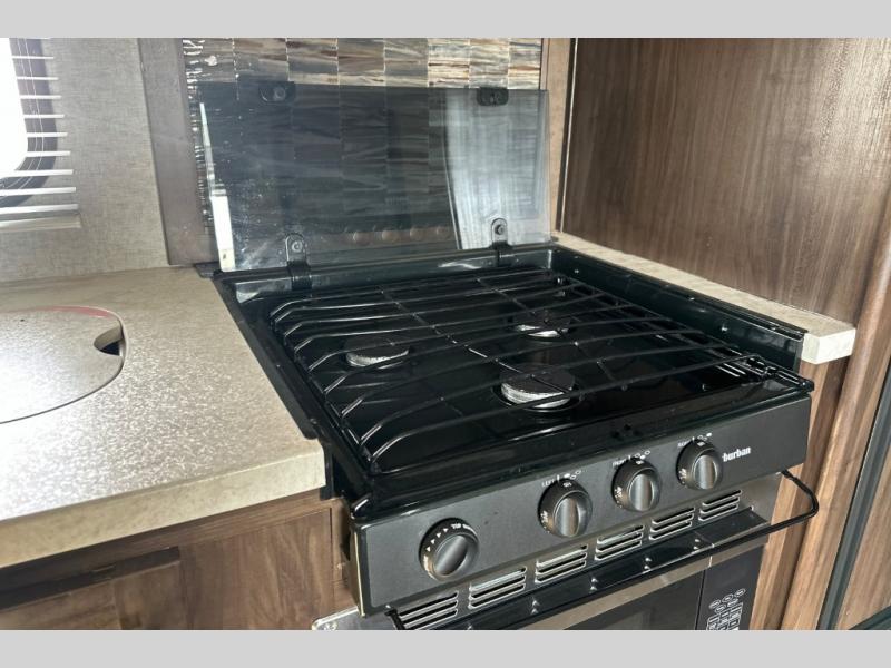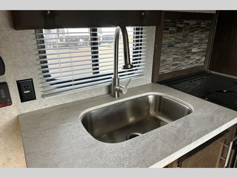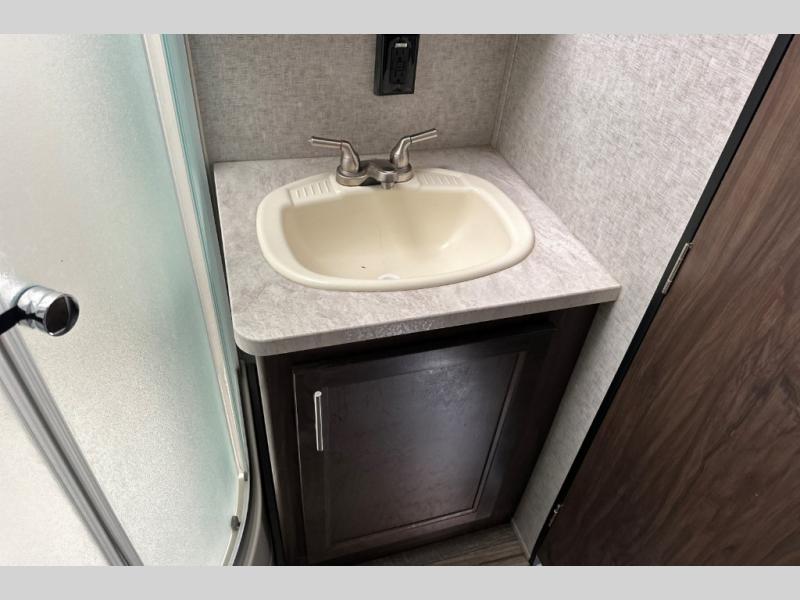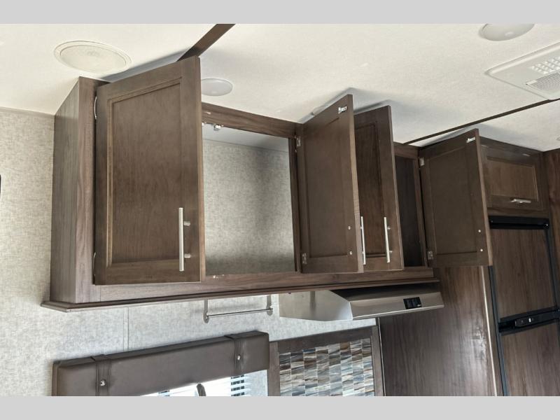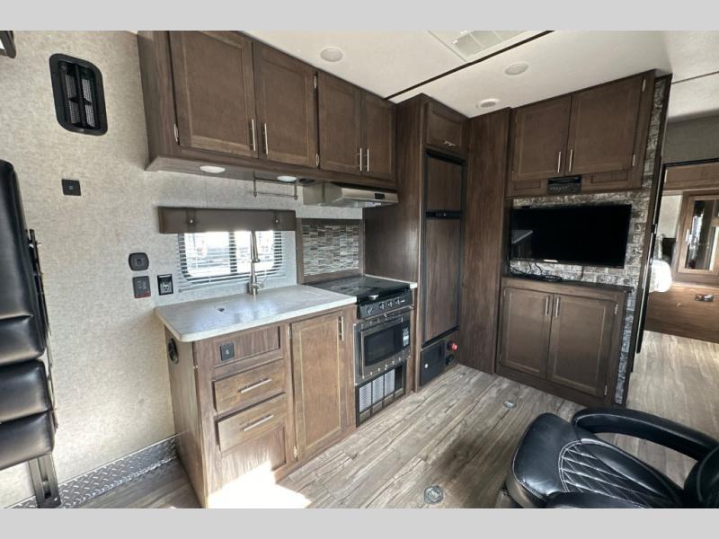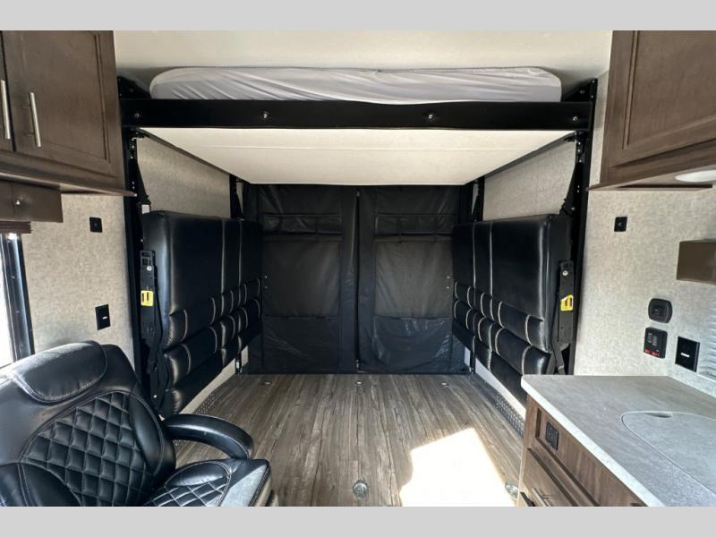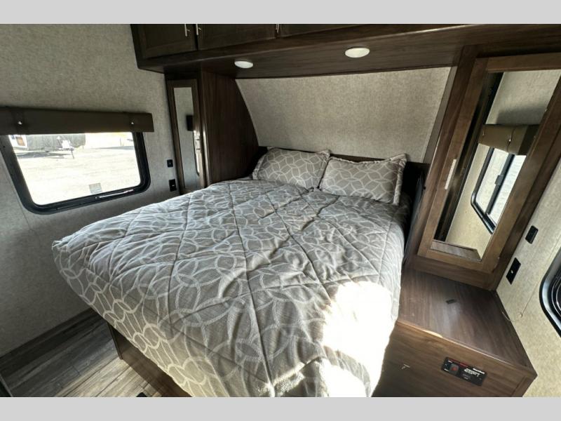 Let this Cherokee Wolf Pack 24PACK14+ take you, your family, and your off-road toys to the outdoor playground of your choice! You can easily load and unload your riding toys with the rear ramp door. After your gear is unloaded from the 14' of cargo space, then set up the two sofas and the removable dinette table for a nice eating/visiting area. Above there is a Happijac bed which you can lower at night. The spacious kitchen features a large sink, three burner range, and a refrigerator. In the private front bedroom you will find a queen bed as well as two nightstands and two wardrobes. Enjoy spending more time outside enjoying the shade of the 15' power awning and more!