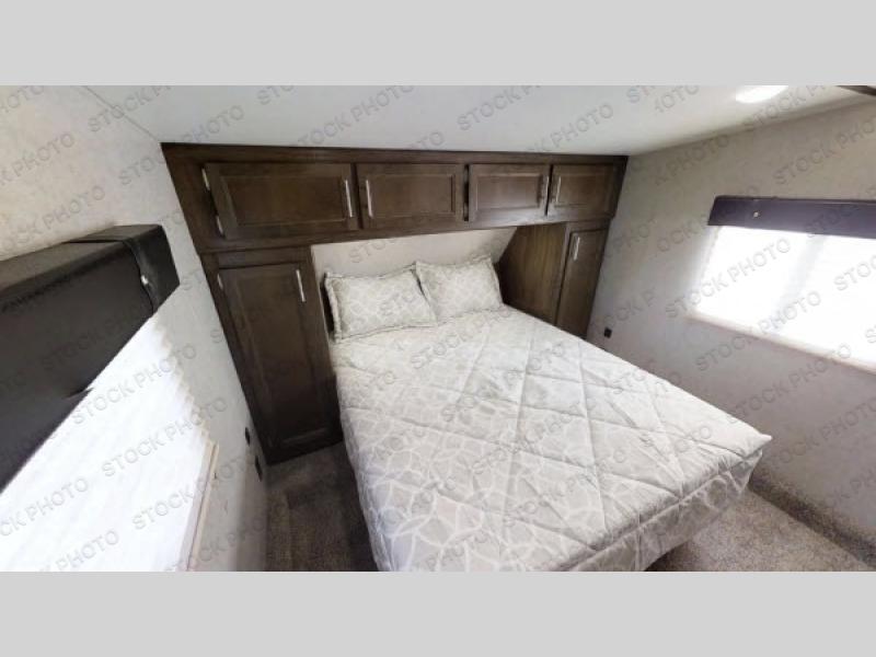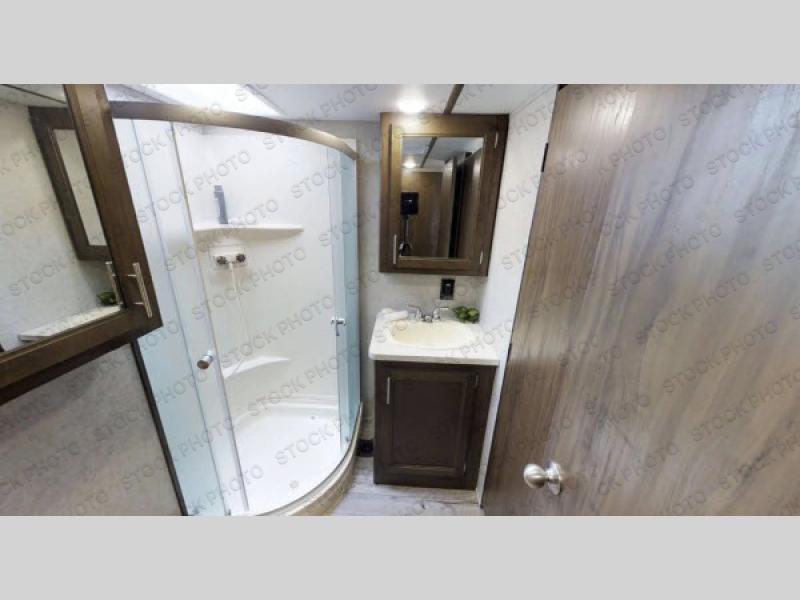 With any Cherokee Wolf Pack toy hauler fifth wheel it is easy to keep the outdoor fun going all weekend long! There is plenty of room for a few dirt bikes, a four wheeler, or an ATV - whatever your favorite riding toy is there is space! You can clean up before coming indoors with the convenient outside shower. Inside you will find conveniences such as tongue and groove plywood floors, real wood doors and drawers, wood blinds, and an 8 cu. ft. refrigerator. The Limited Package includes a few more upgraded items such as a kitchen appliance package, a hypoallergenic Evergreen mattress, USB charging stations, a drop in cooktop with glass cover and so much more!