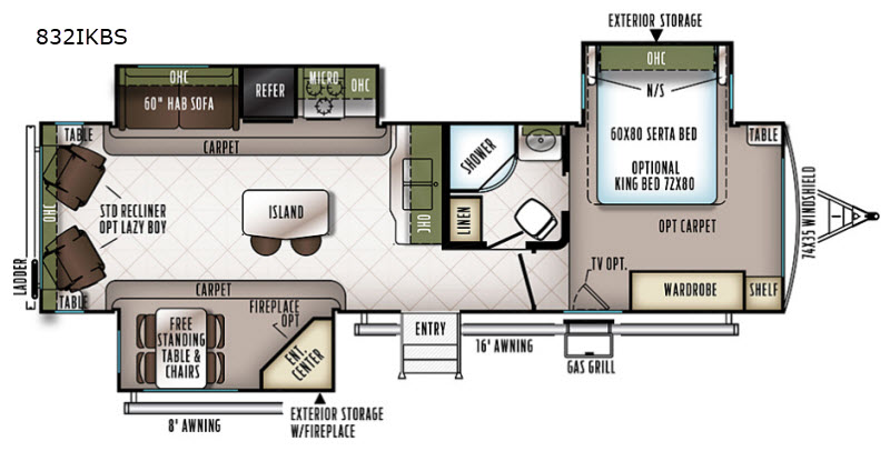 Are you ready for some relaxation after having fun in the great outdoors? Load up your family and head out to your favorite campground with this Flagstaff Classic Super Lite 832IKBS travel trailer. The kitchen area has an island with two bar stools where you can enjoy your breakfast and visit with the cook. At night, you can retire to a queen Serta mattress in the front bedroom that also includes a sliding second entry into the bathroom for easy access at night. In the evening, you might like to visit outside with other campers while sitting under the 8' and the 16' awning. You will find many more features to want, a few options to add, and so much more! Take a look today.