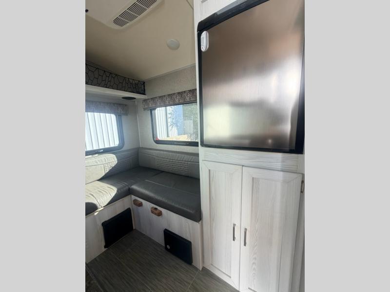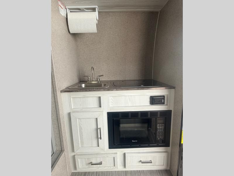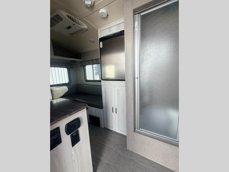 Maybe you are just starting out in the camping world, or are quite experienced in camping, in either case this Rockwood Geo Pro 14FK is for you! You don't need to use the public facilities anymore thanks to the wet bath that is across from the entry door. The u-shaped dinette provides a space to dine, play games, and sleep at night. You will find storage throughout including inside the wardrobe/pantry. You can cook indoors on the recessed cooktop with flush mount cover and in the microwave, or outside on the gas grill, plus more!