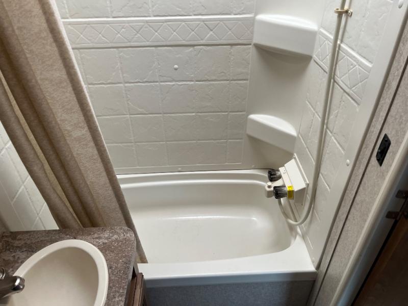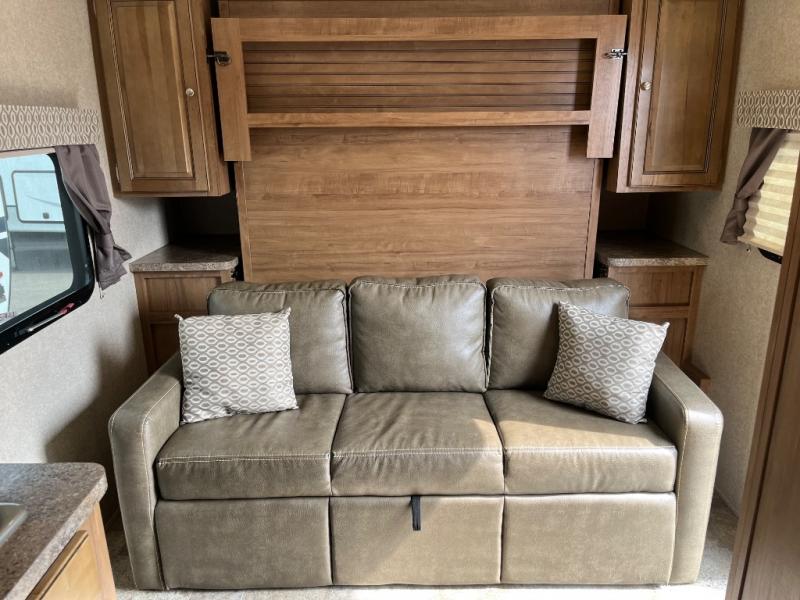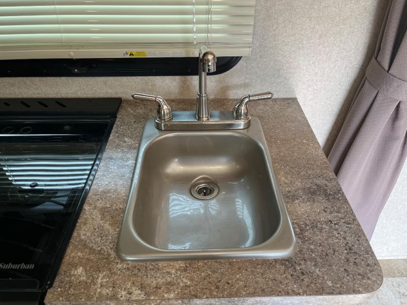 This Flagstaff Micro Lite 19FD is ideal for the couple who enjoys time away from home camping. In the front there is a 73" sofa and at night easily pull down the 60"x74" Murphy Bed. The 32" dinette also can convert into a sleeping spot if needed! You will enjoy the convenience of your own bathroom in this model. Here there is a tub, linen cabinet, toilet, and sink. Come plan to sit under the 13' awning and watch the evening sunset. Outside there is also a gas grill which is a nice option for fixing a quick burger or hot dogs. The Standard Package H is available for this model and includes features such as a single door refrigerator, outside speakers, a heated mattress and more!