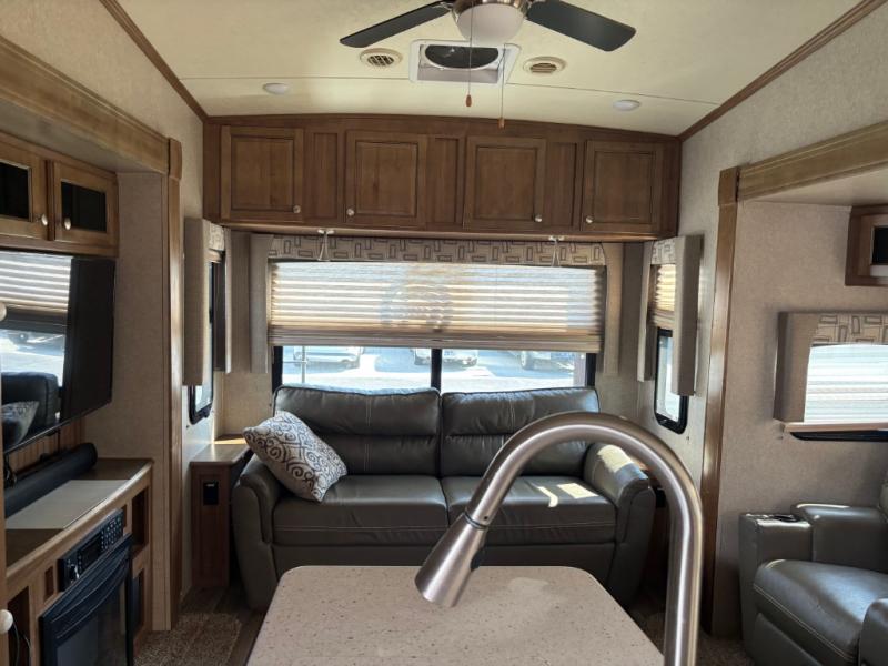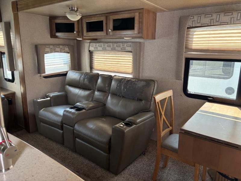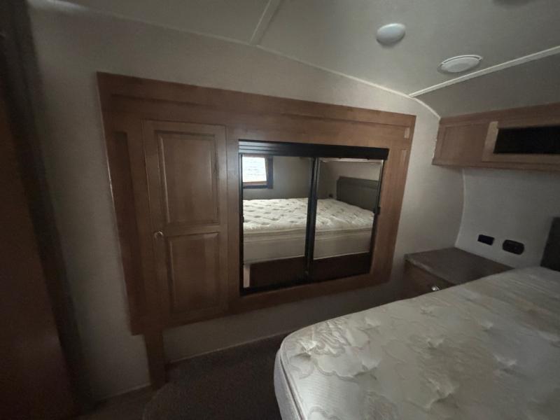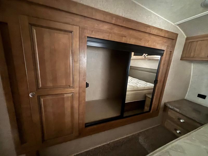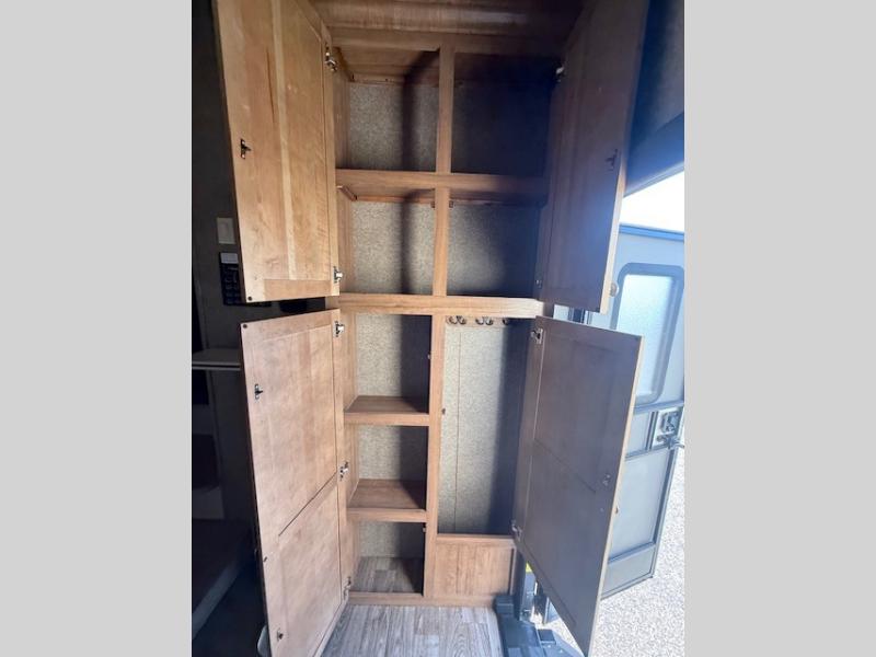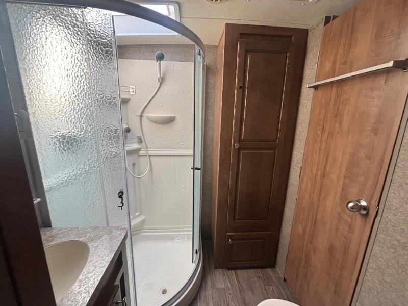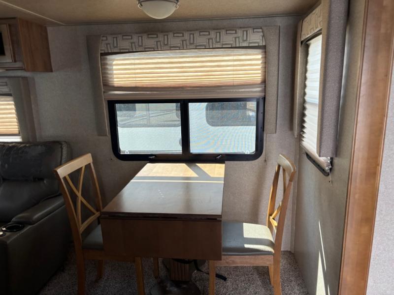 It will be easy to make plenty of memories with your family when you choose to camp with a Flagstaff Super Lite fifth wheel.These models have a beautiful Driftwood interior with solid wood and raised panel doors and drawers. Enjoy the 32" LCD TV with premium soundbar, plus the recessed ceiling LED 12V interior lighting throughout. Along the exterior there is a fully aluminum frame, radius roof with interior vaulted ceilings which gives you the most headroom, plus large dinette picture windows where you can sit and enjoy the view. The Standard Packages offer features such as a WiFi ranger WiFi booster, an enclosed underbelly, a power awning with adjustable rain dump and LED light strip, a rear observation camera prep with molded mounting plate, and so much more!